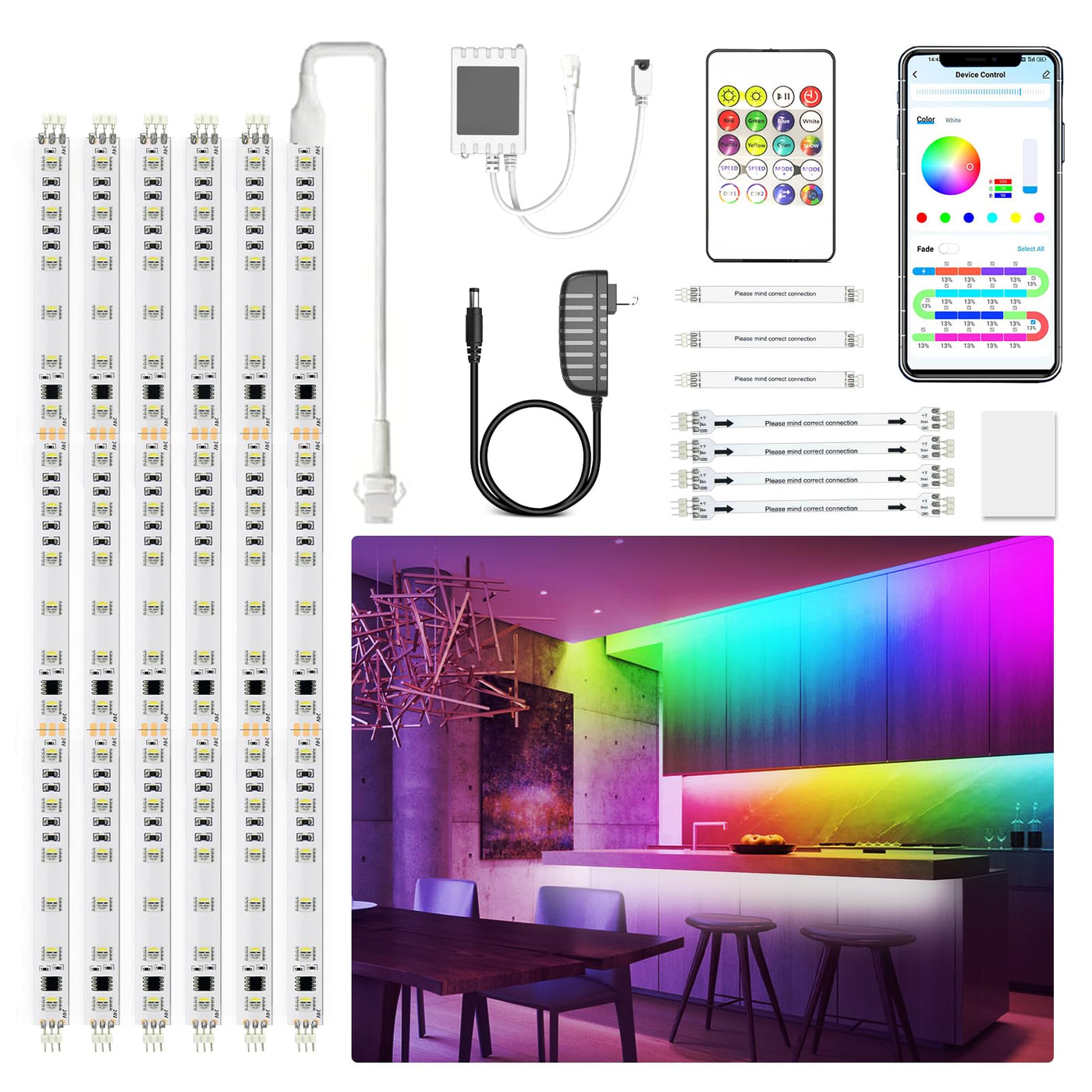 Daybetter Under Cabinet Lights 20Ft, Rgbw Ic Individually Addressable Led Lights App Remote Control, Diy Strip Lighting Multiple Colors And Daylight White 6500K For Bedroom Kitchen Counter 24V, 6 Pcs