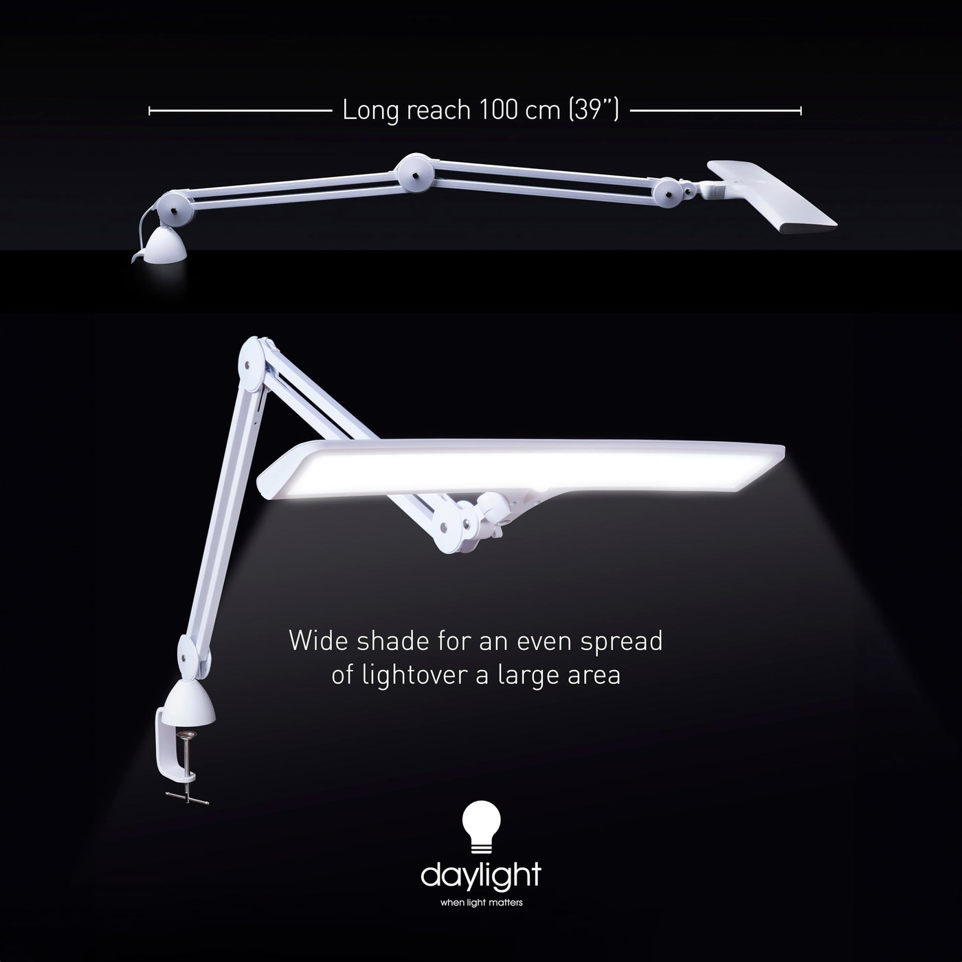 Daylight Company Lumi Task Lamp,+95 Cri, 4000 Lux,Craft Light, Super Bright Desk Lamp, Touch Dimmable, 2 Brightness Levels, Idea