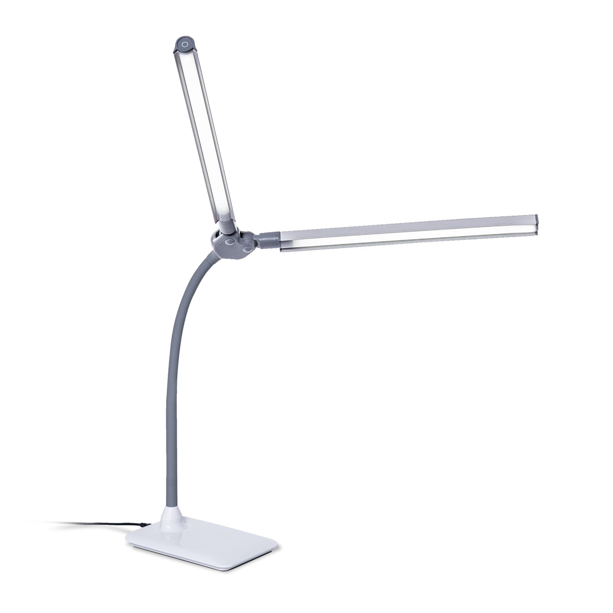 Q: What are the key features of the DuoPro™ Table Lamp?A: The DuoPro™ Table Lamp features a unique double shade design for enhanced illumination, 56 high-quality daylight LEDs with a 6,000K color temperature for accurate color representation, and a touch switch dimmer that offers 4 adjustable brightness levels. It also has a pivoting head joint and a flexible arm for precise light direction, anti-glare shades to reduce eye strain, and a modern design that fits seamlessly in any workspace.