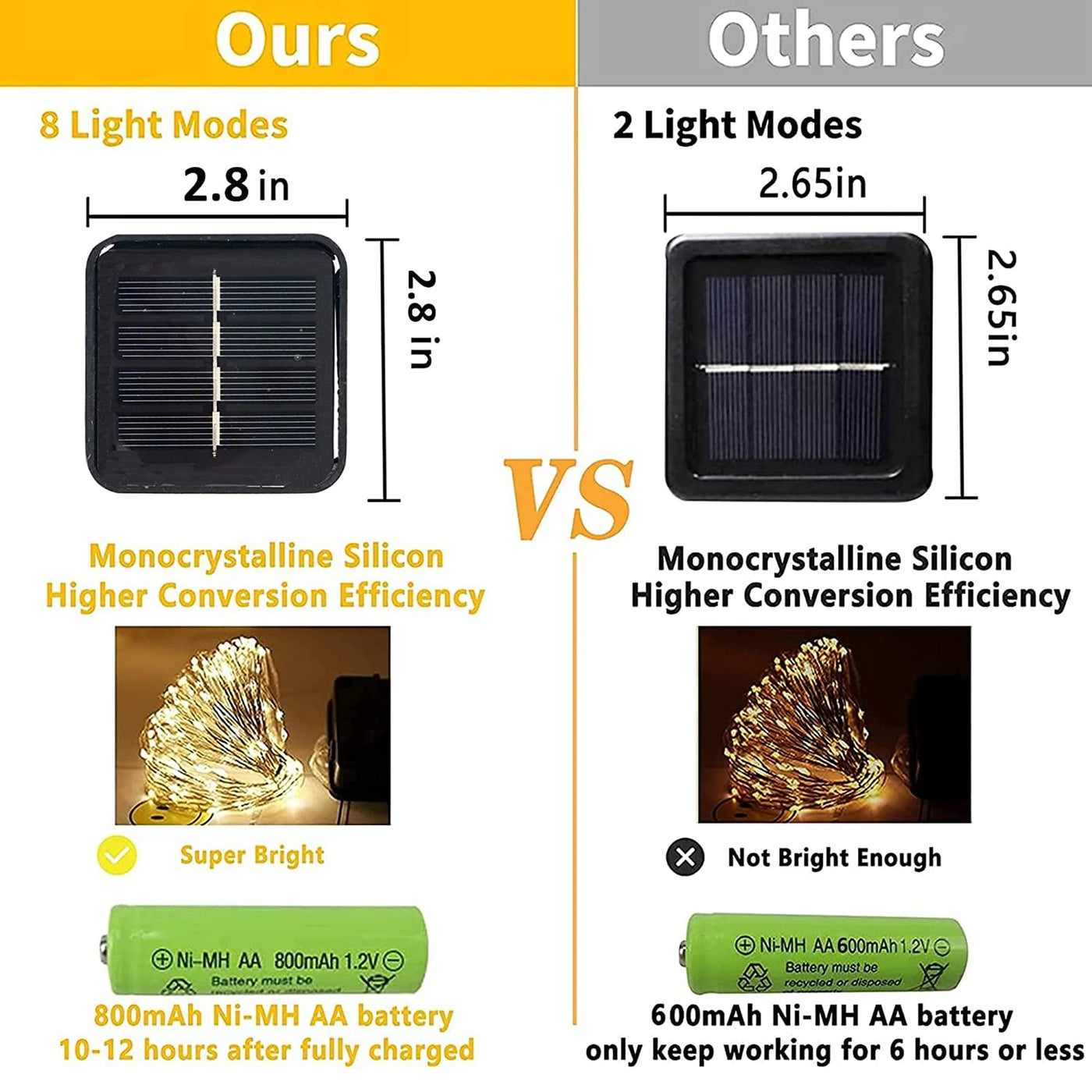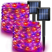 Dazzle Bright 2 Pack Halloween Fairy String Lights, 39.4FT 120 LED Solar Powered Fairy Lights with 8 Modes, Waterproof Copper Wire Lights for Outdoor Christmas Yard Party Patio (Purple & Orange)