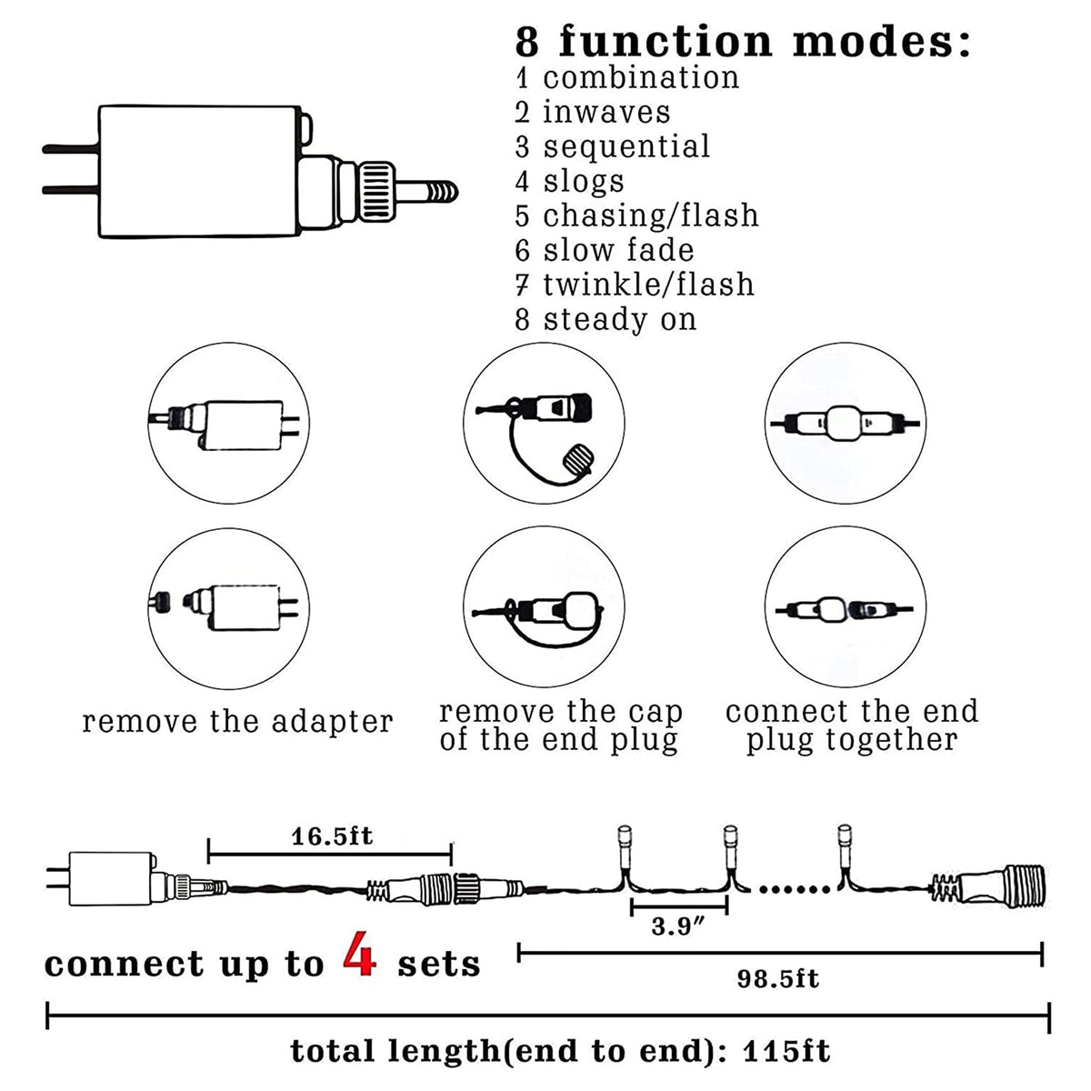 Q: Can I connect multiple Dazzle Bright string lights together?A: Yes, you can connect up to 4 Dazzle Bright string lights, allowing for a maximum of 1200 LED lights to accommodate larger decoration spaces.