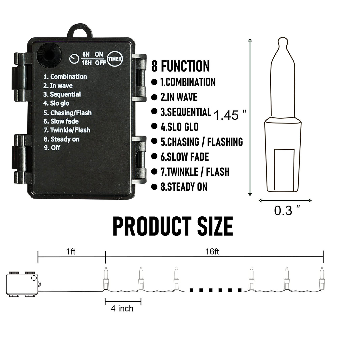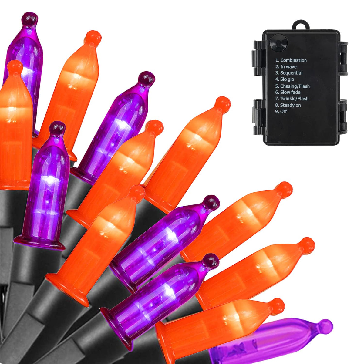 Dazzle Bright 50 Led Battery Operated Christmas Lights, 16Ft Waterproof Mini String Lights In Purple And Orange For Indoor/Outdoor Decor