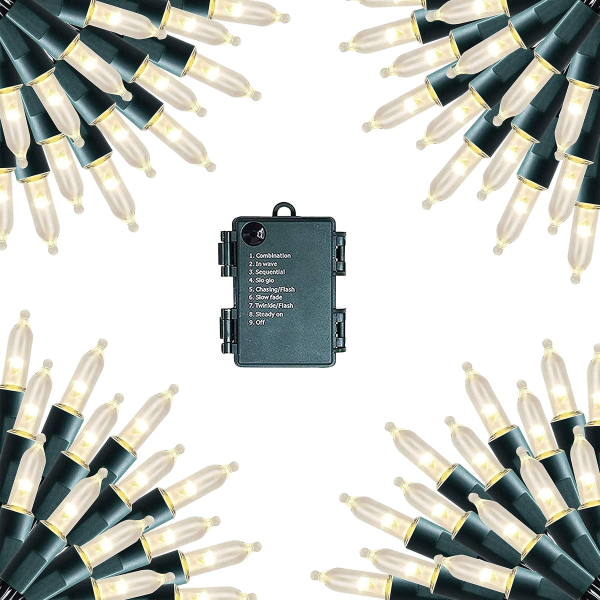 Dazzle Bright 50 LED Warm White Christmas Mini String Lights, 4 Pack 16 FT Batter Operated Waterproof Fairy Lights with 8 Modes for Xmas Indoor Outdoor Yard Garden Holiday Wedding Decorations