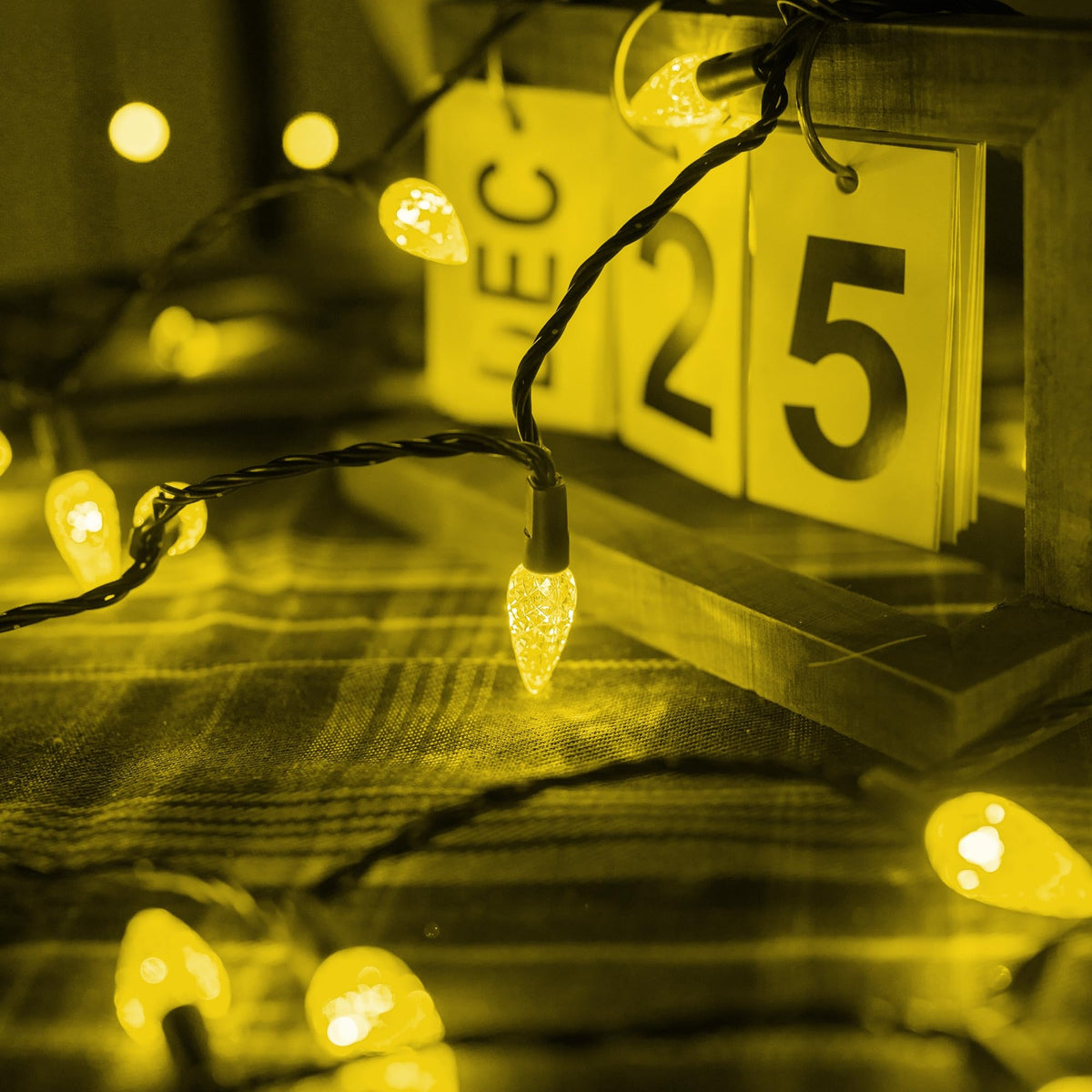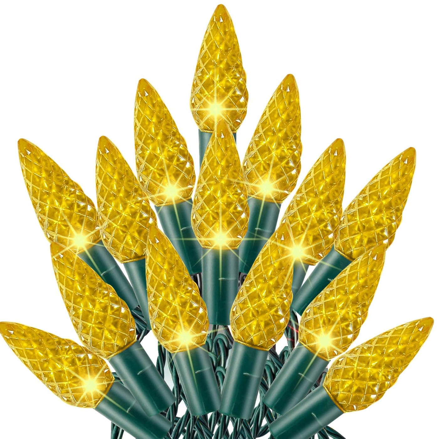Q: Can I connect multiple strings of these lights together?A: Absolutely! The Dazzle Bright C6 Christmas String Lights are designed to be end-to-end connectable, allowing you to connect up to 5 strings, or 500 LEDs, for a longer display.
