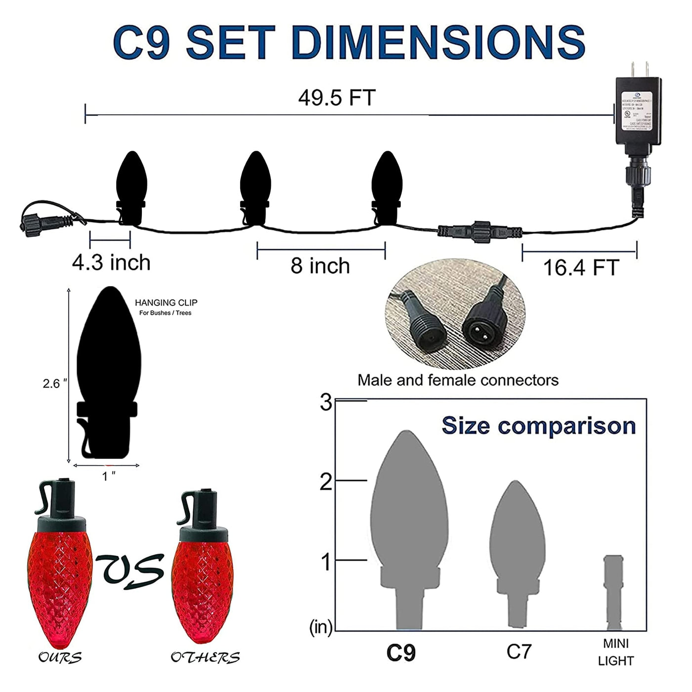 Q: How should I store these lights after use?A: To ensure the longevity of the Dazzle Bright C9 Christmas Lights, store them in a cool, dry place, preferably in their original packaging or a protective container to prevent tangling and damage.