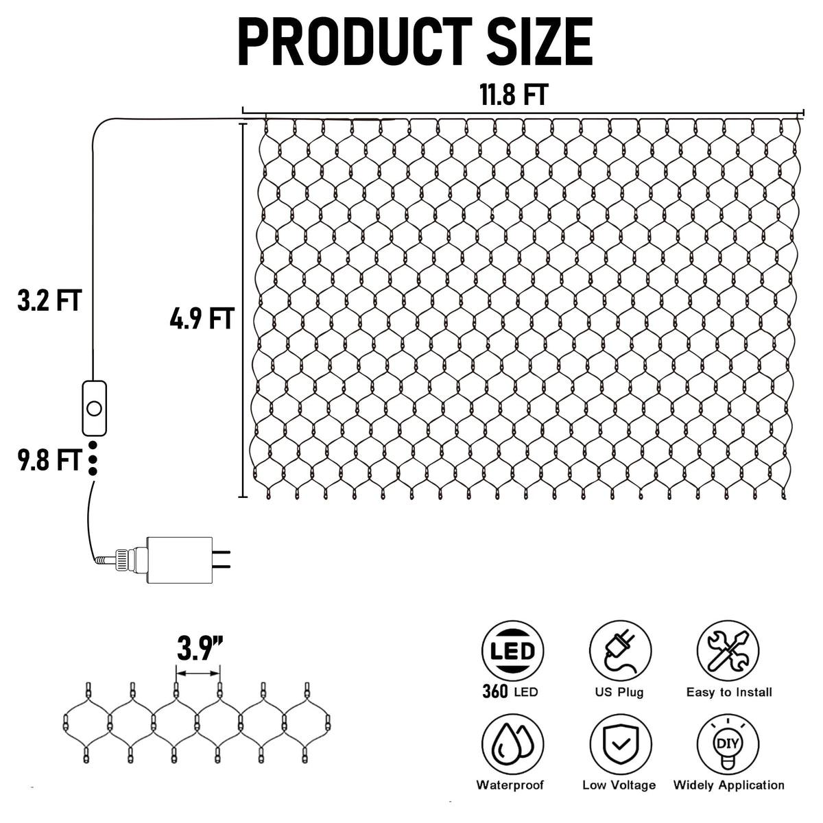 DAZZLE BRIGHT Halloween 360 LED Net Lights, 12FT x 5 FT Connectable String Lights with 8 Lighting Modes, Halloween Decorations f