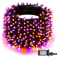 Dazzle Bright Halloween String Lights, 600 Led 196 Ft Waterproof Black Wire String Lights With 8 Lighting Modes, Halloween Decorations Outdoor For Party Yard Garden Decor, Purple And Orange