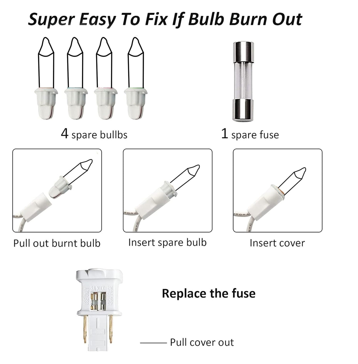 Q: How many lights are included in this set?A: This set includes 150 incandescent bulbs, providing ample lighting for a variety of decoration needs.