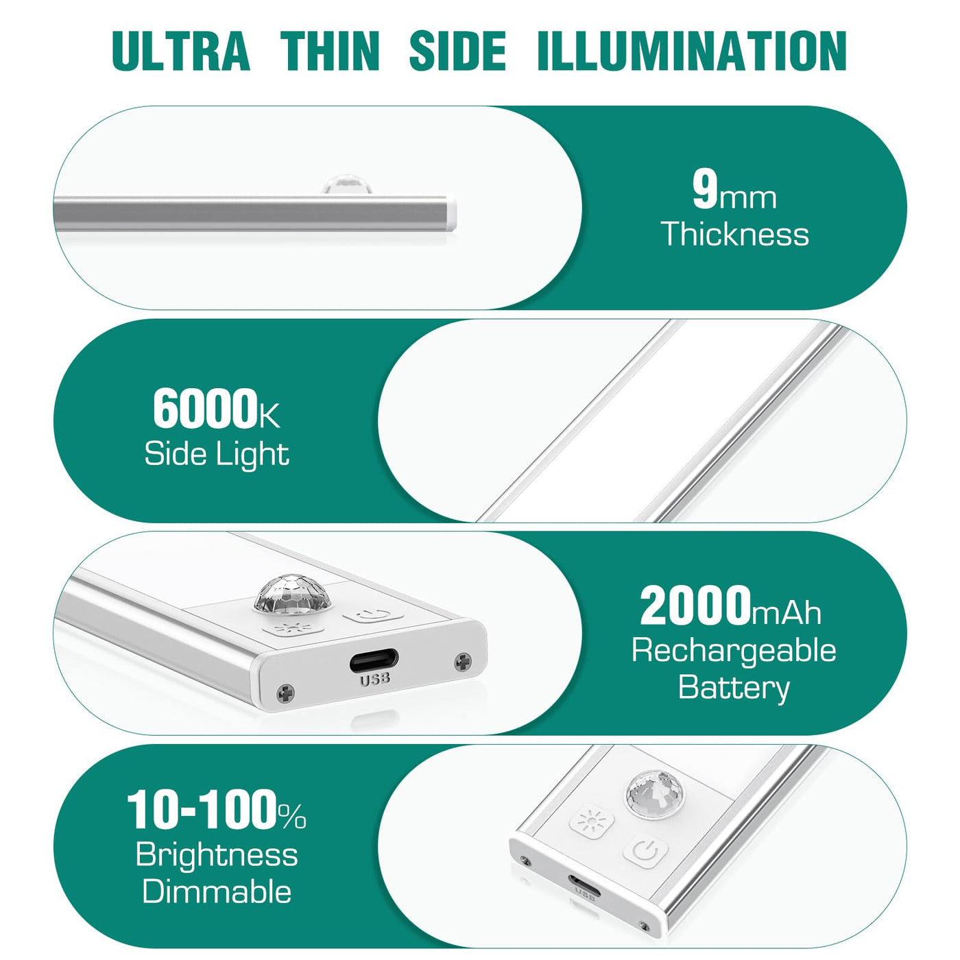 - **Ultra-thin, Versatile Design**: At only 9mm thick, the compact design allows these lights to fit seamlessly into tight spaces and dark corners. Built-in magnets enable easy attachment to any metal surface, or utilize the included iron sheets with tape for non-metal surfaces. Effortlessly remove and relocate as needed.