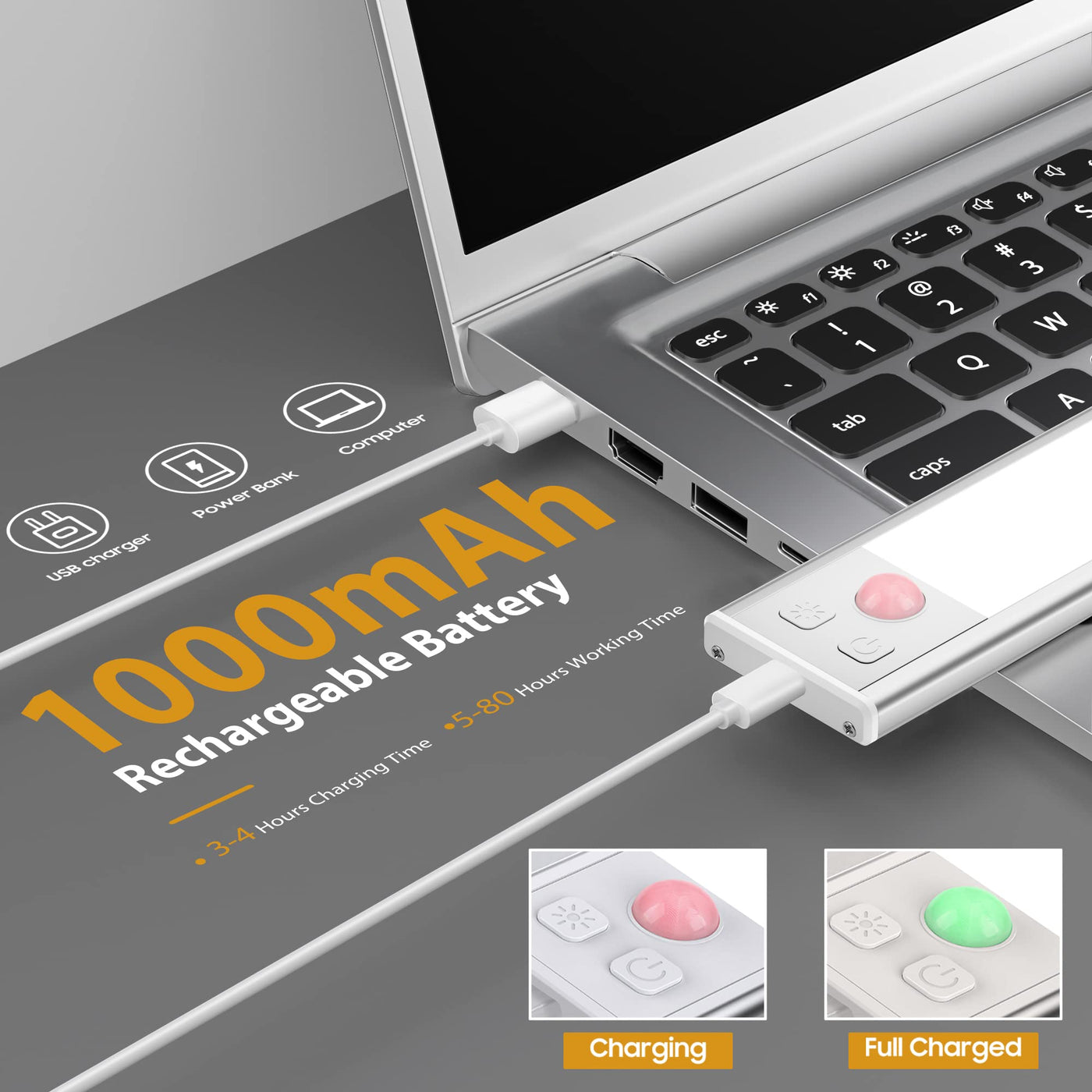 - **USB-C Rechargeable & Energy Efficient**: Equipped with a built-in 1000mAh rechargeable battery, these LED lights offer hassle-free charging via USB-C. Charge them on your computer, power bank, or USB outlet. Enjoy extended lighting durations of 5-80 hours on Always-on Mode or 7-25 days on Motion Sensor Mode, depending on usage and brightness settings.