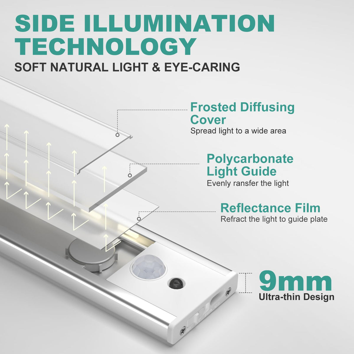 - **Ultra-thin Design & Quick Installation**: With a sleek 9mm thickness, these lights fit seamlessly into any tight space or dark corner. Installation is a breeze with built-in magnets for metal surfaces and included iron sheets for non-metal surfaces, allowing you to reposition easily when needed.
