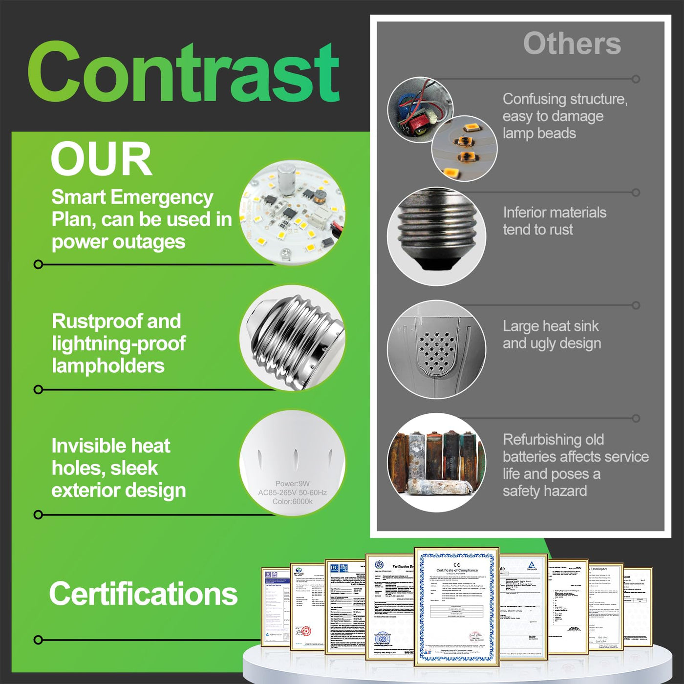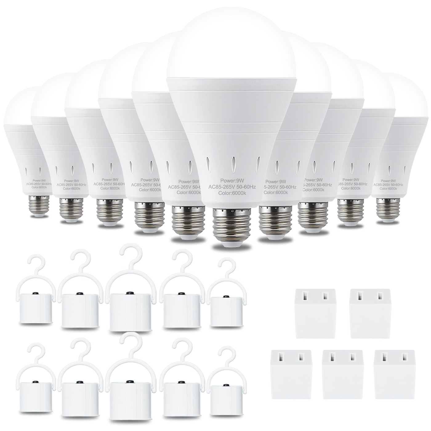 Debaobulb 10 Pack Rechargeable Emergency Light Bulbs, Battery Powered Led Light Bulb 6000K Daylight E26 120 Volt 9W 60W Equivale