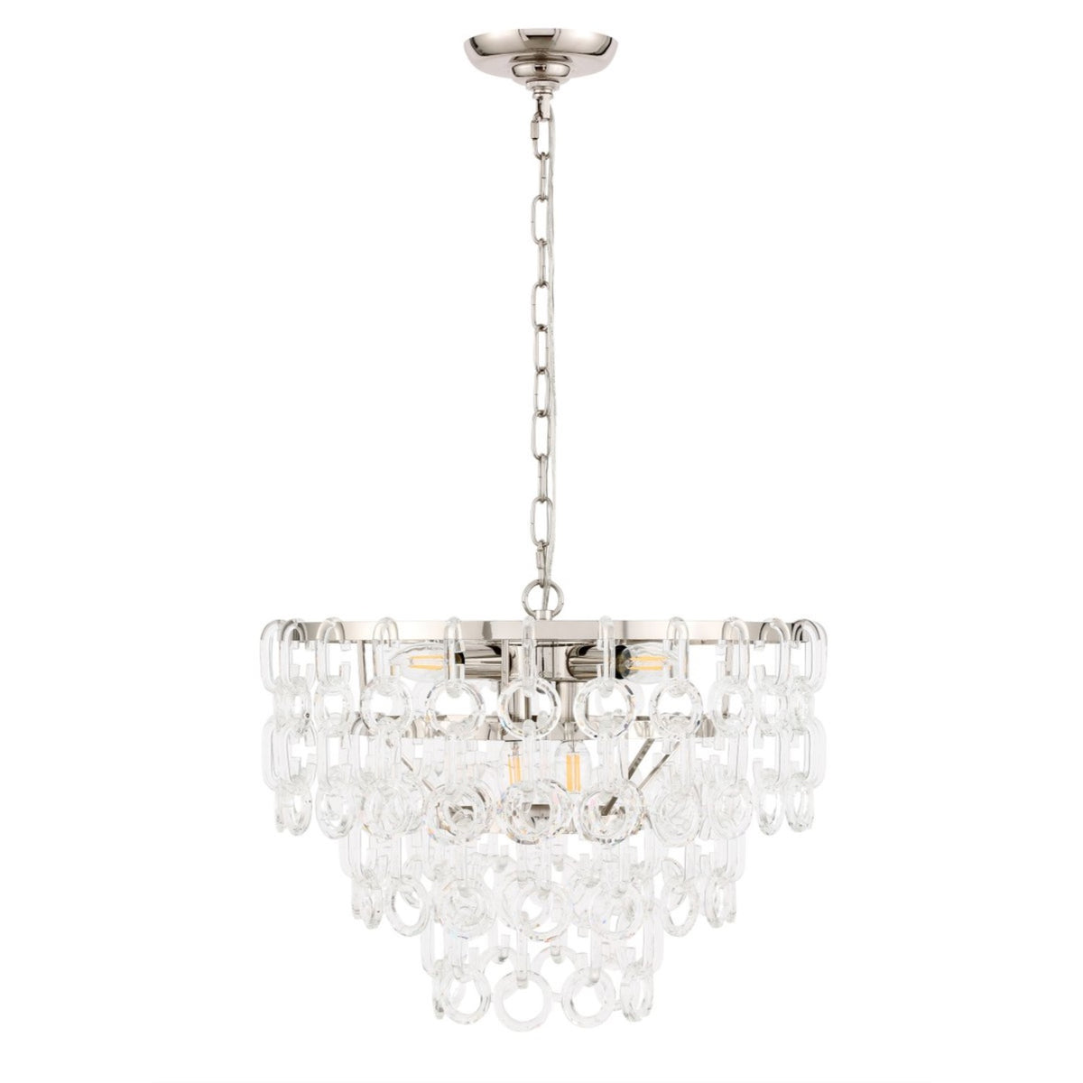 Dance and laugh underneath this beautiful Debutante collection pendant lamp in a polished nickel finish with stunning clear crystal ringlets that hang with delicate ease. As if being coquettish, the lights play hide and seek from within the ringlets, peeking through and letting light shimmer through. The perfect pendant to greet friends and family in the foyer, light up your conversations in the living room, or highlight your beauty in the powder room.Proposition 65 WARNING: This product can expose you chemicals including lead and lead compounds, which are known to the State of California to cause cancer and birth defects and other reproductive harm.. For more information go to: www.P65Warnings.ca.gov.