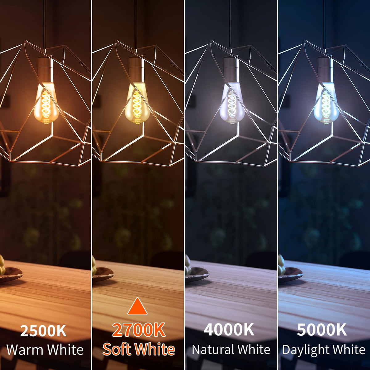 Vintage Aesthetic: Our Edison bulbs are beautifully crafted with dual helix filaments, employing higher-cost and more intricate manufacturing processes unlike common straight filaments, casting a soft, tender glow that brings a nostalgic yet modern touch to any deco | Energy-Efficient and Long-Lasting: Savor the warmth of our 4W bulbs, the 20W equivalent in illumination, while embracing enhanced safety due to reduced heat generation. With a lifespan extending over 25,000 hours, our bulbs promise enduring reliability and steadfast performance, allowing you to relish the energy efficiency and calm they bring | Comfortable Lighting: Producing 200 lumens of steady, flicker-free, and cozy warm illumination, Decoaui LED Edison bulbs are designed to reduce eye strain. Their high CRI of 85+ ensures accurate and natural color rendering in all your spaces | Versatile Application: Perfect for nightlights, bedrooms, living rooms, dining areas, and in open fixture as decorative lighting. Ensure the bulb's size of 5.4'' length x 2.5'' diameter is suitable for your chosen fixture, particularly within table lamps | Versatile and Dimmable: Experience smooth, flicker-free lighting from 0% to 100% brightness, ideal for various settings from porches to cozy indoor spaces to creat an instant ambiance. Compatible with 90% of LED dimmers, it features a standard E26 base for universal fit