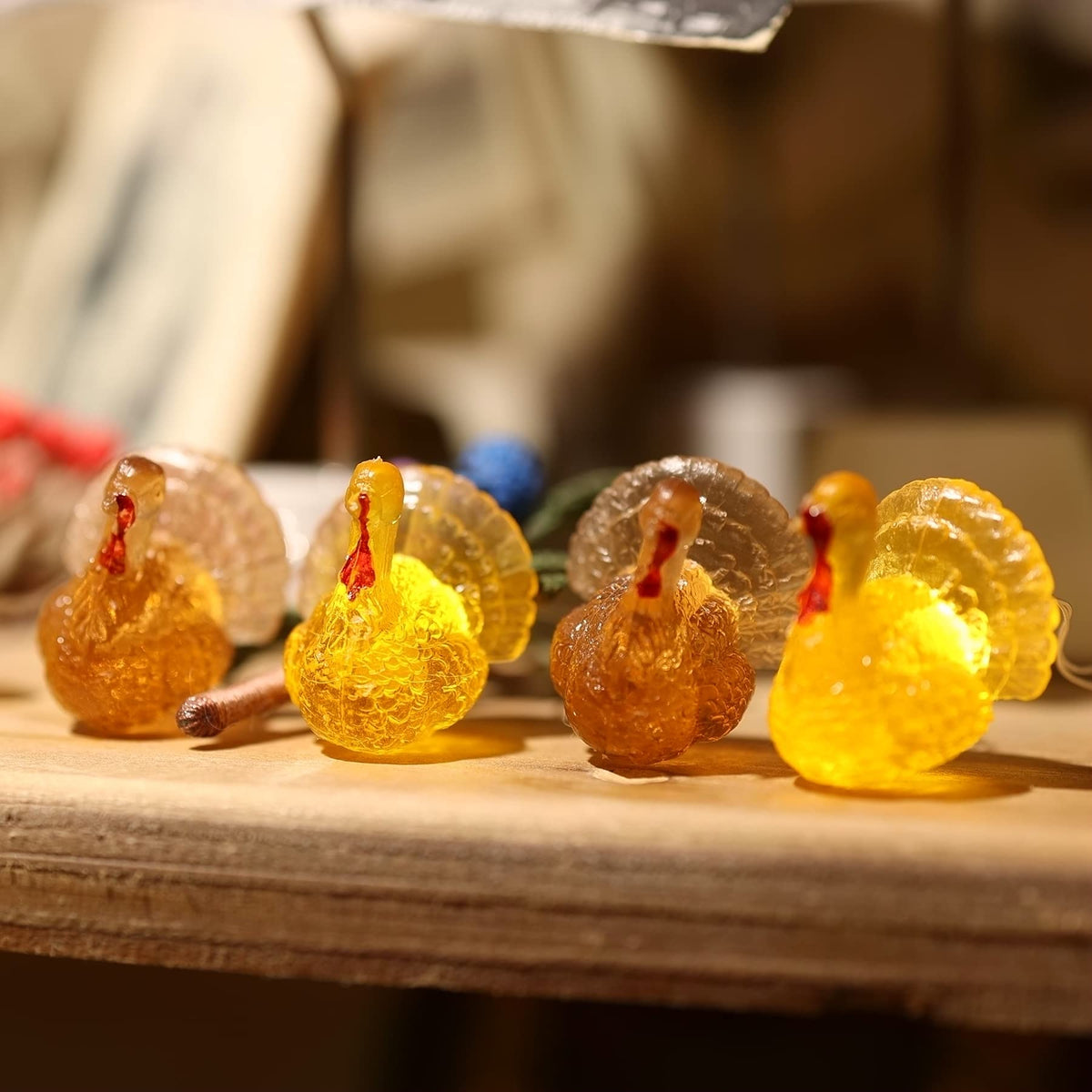 Q: How can I control the Decorative Fairy Mini Turkey String Lights?A: The string lights come with a wireless remote control that allows you to set timers, adjust brightness, and choose from various flash settings for your convenience.