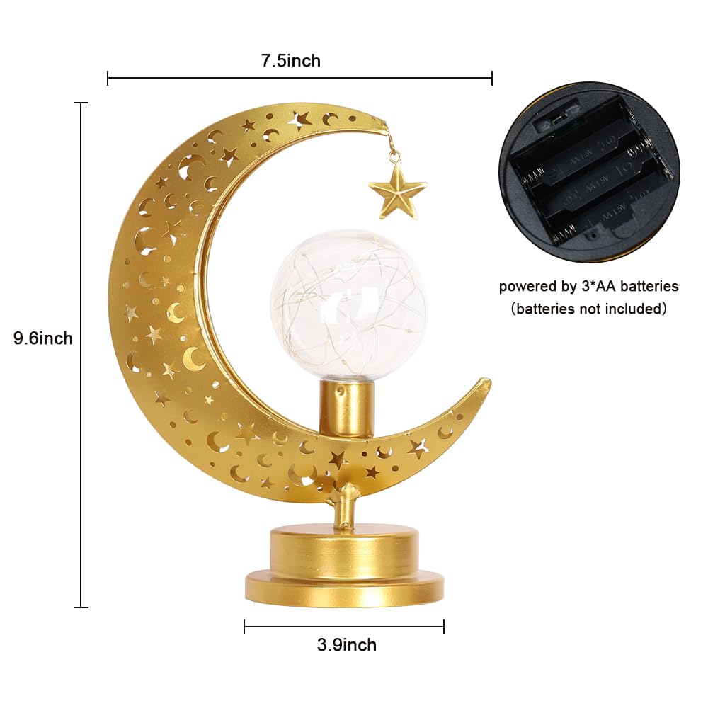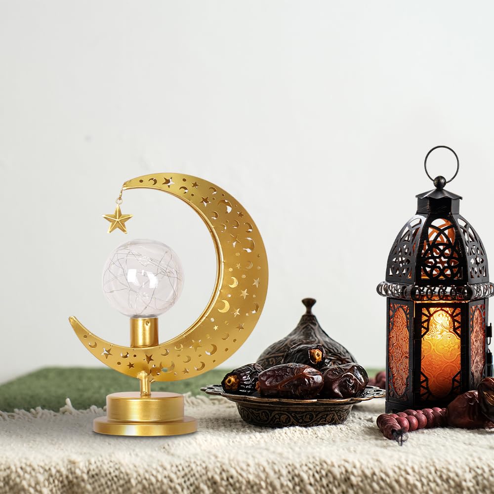 Decorkey Moon Lamp, Ramadan Decorations Indoor And Outdoor,Moon Star Lamp With Led Bulb & Timer Function Table Decor,Ramadan,Eid Home Decor, Gifts