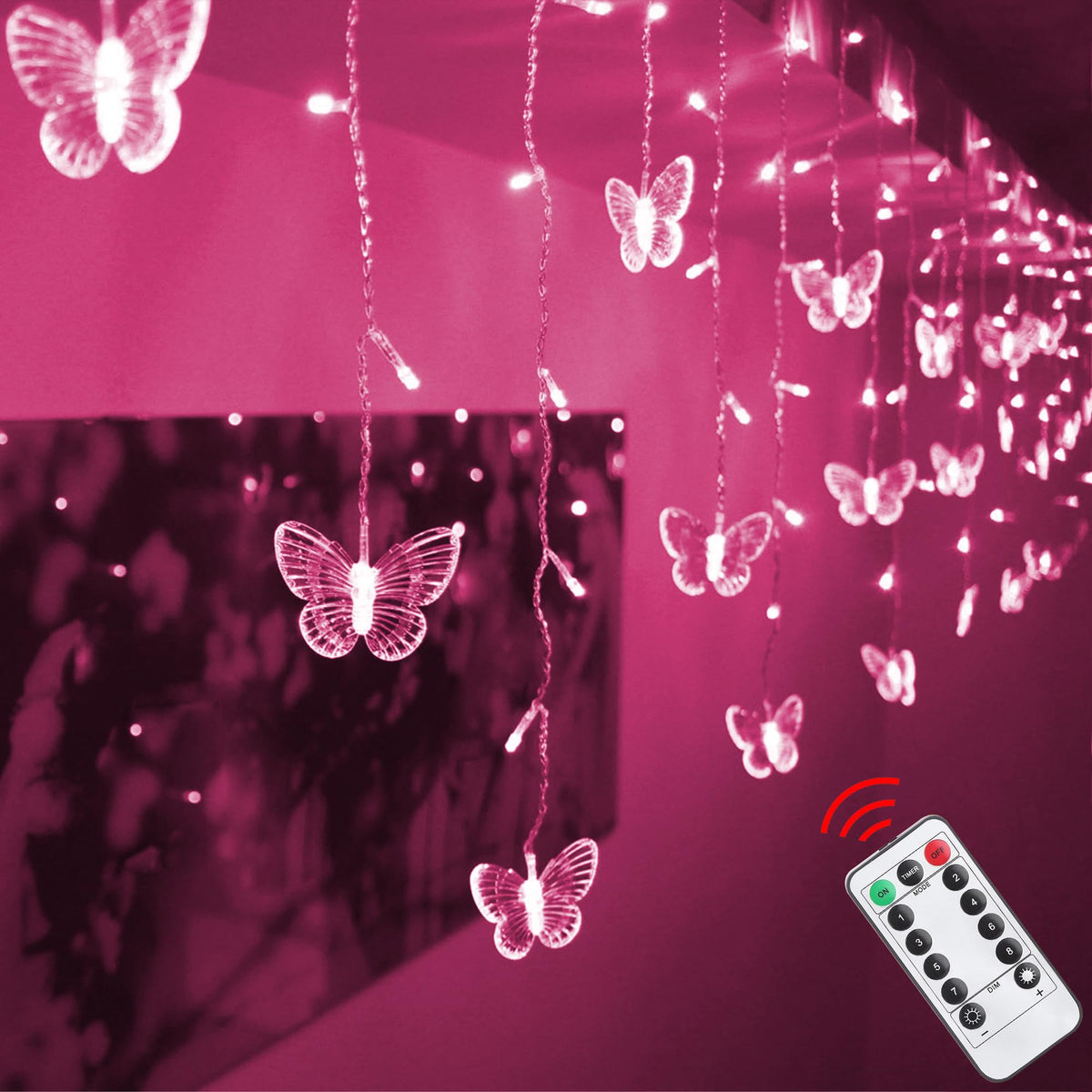 Decorman 8 Modes 48 LED Butterfly Curtain Fairy Lights with Remote Perfect for Bedroom Weddings Christmas Festival Indoor and Outdoor Decoration Item Specifications: Brand: Decorman Powered By: USB Cable Type: LED Butterfly Curtain Light Color: Pink LED Quantities: 48pcs LEDs(Include 10pcs butterflies) Waterproof Grade:IP44 Butterfly Size: 7 x 5cm (2.7 x 1.9in) Light Size: 1.5 x 0.5m (4.9 x 1.6ft ) Package Size: 15 x 10 x 7cm (5.9 x 3.9 x 2.7in) Package Weight: 220g (0.48lb) 8 Different Working Modes: 1.Combination 2.In Waves 3.Sequential 4.SLO GLO 5.Changing / Flashing 6.Slow Fade 7.Twinkle / Flash 8.Steady On Package Contents: 1 x Butterfly LED Curtain String Light 1 x Remote