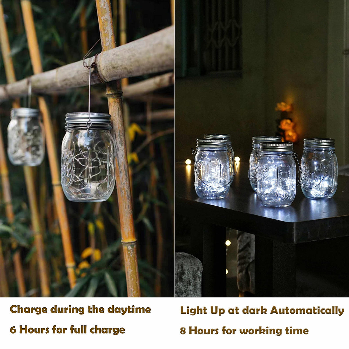 Features: - Creative and innovative style of the Mason Jar LED lights will lighten up your home into a paradise of lights. - Particularly suitable for garden lighting or winter garden lighting. - Easily be placed on your terrace or balcony or be used as table decoration. You can individually decorate your Mason Jar with sand, pebbles, shells or pearls. - Come with a light sensor, which automatically turns on as soon as it gets dark outside and automatically turns off during daylight. - Energy saving and solar charging, exactly eco-friendly. - Perfect for your garden, balcony, terrace, entrance, pavillon, pool or pond.