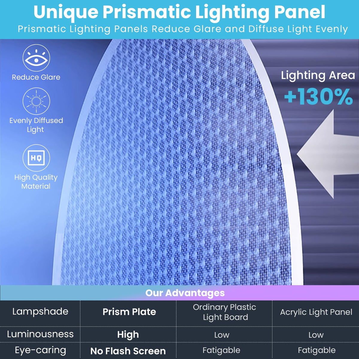 Q: What is the night light feature in the DEEPLITE Ceiling Light Fixture?A: The DEEPLITE Ceiling Light Fixture includes a separate 2000K night light that provides a soft glow, creating a warm and relaxing atmosphere without being harsh on the eyes. This feature allows you to choose between 50% and 100% brightness options for added comfort.