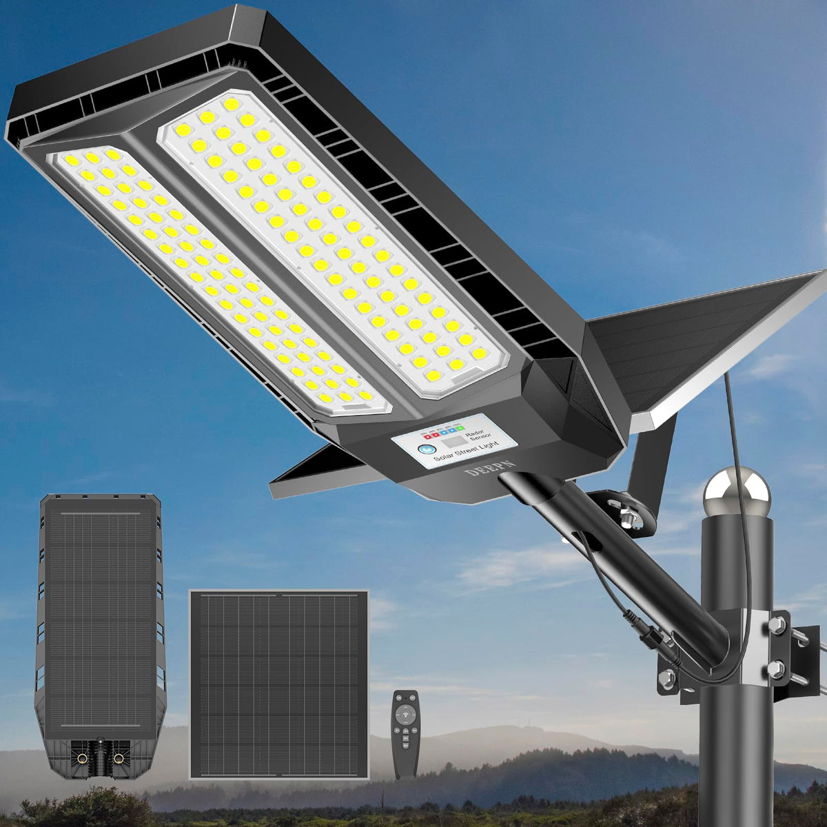The Solar Street Lights Outdoor are high-performance, energy-efficient outdoor lighting solutions designed to illuminate your garden, yard, driveway, pathways, and streets. Powered by solar energy, these lights are eco-friendly, cost-effective, and easy to install, making them the perfect choice for enhancing outdoor spaces and improving security. Key Features: Dusk to Dawn Outdoor Lighting: These solar outdoor lights harness sunlight to charge during the day and automatically turn on at night, providing reliable illumination without the need for electricity or wiring. Bright Upgraded Spherical Lens Lighting: Equipped with high-lumen LED beads, the Solar Outdoor Lights deliver powerful, wide-angle lighting, making them ideal for use as solar street lights, solar security lights, or solar garden lights. Motion Sensor Night Light Technology: The built-in motion sensor detects movement up to 20 feet away, instantly activating the light to enhance security and visibility around your property. Weatherproof Design: Constructed with IP66 waterproof materials, these solar powered street lights are built to withstand rain, snow, and extreme temperatures, ensuring durability and long-lasting performance. Adjustable Dual Solar Panel: The adjustable solar panel allows you to position the light for optimal sun exposure, maximizing charging efficiency and ensuring consistent performance. Long-Lasting Battery: With a high-capacity rechargeable battery, these solar flood lights provide up to 24 hours of illumination on a full charge, even on cloudy days. Applications: Garden & Yard Lighting: Create a warm and inviting atmosphere in your garden or backyard with bright, energy-efficient solar outdoor lights. Driveway & Pathway Lighting: Ensure safe and secure navigation with solar lights for driveway and solar lights for pathways. Solar Flood Security Lighting: Enhance home security with motion-activated solar security lights that deter intruders and illuminate dark areas. Street & Public Area Lighting: Provide reliable illumination for streets, sidewalks, and public spaces with solar street lights. Wall & Fence Lighting: Mount these solar wall lights on walls, fences, or garages for versatile outdoor lighting. Eco-Friendly: Reduce your carbon footprint with solar-powered outdoor lights that rely on renewable energy. Cost-Effective: Save on electricity bills with energy-efficient solar lighting. Easy Installation: No wiring required! Simply mount the lights in a sunny location and let the sun do the rest. Versatile & Reliable: Whether you need solar lights for camping, solar lights for emergency situations, or solar lights for off-grid living, our lights are designed to perform in any environment. Package Includes: Solar Sreet Lights Mounting Hardware User Manual Transform Your Outdoor Spaces Today! Upgrade your outdoor lighting with deepn Solar Street Lights - the ultimate choice for solar outdoor lights, solar street lights, and solar security lights. Whether you need bright lighting for your garden, driveway, or backyard, our solar-powered lights deliver unmatched performance and reliability. Order now and experience the convenience of eco-friendly, energy-efficient outdoor lighting!