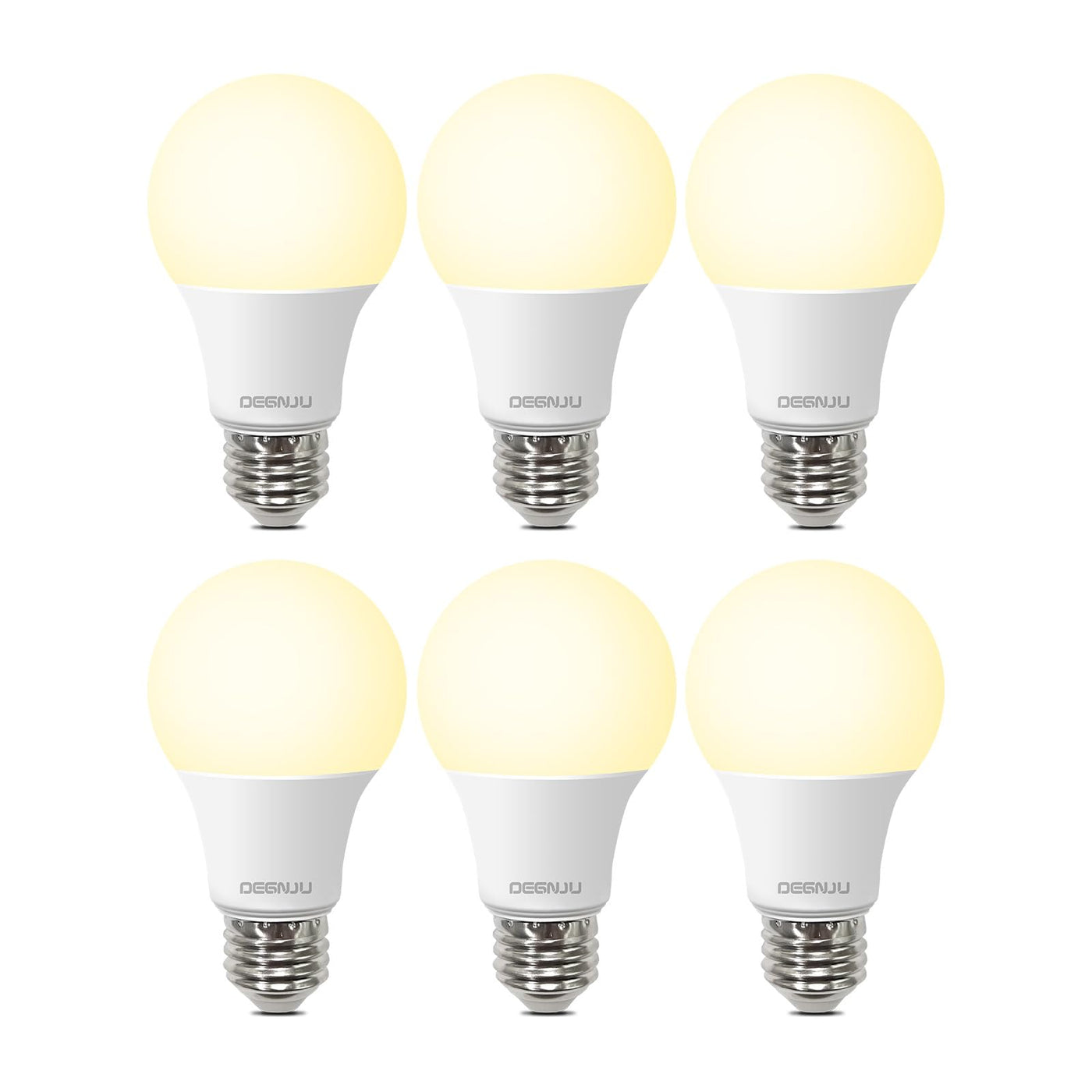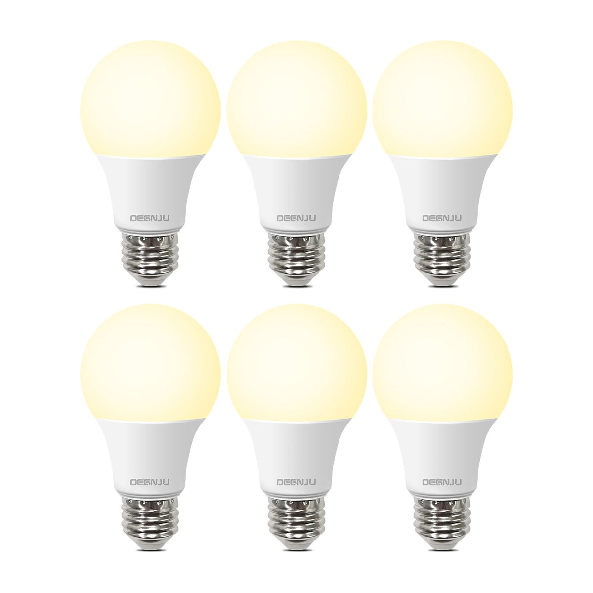 ?Energy Efficient & Cost-saving?Adopting energy-efficient LED chips, DEGNJU A19 LED light bulbs save up to 90% on your electricity bill by replacing 60 watts incandescent light bulbs. They provide more energy efficiency but less heat output, making them a great alternative to 60W incandescent bulbs. Also, these 2700K soft white LED light bulbs largely reducing your energy bills of frequent re-lamping while providing the same lighting quality. | ?15,000 Hours Long Lasting?Our 8.5W (60W equivalent) A19 light bulbs have a long lifespan of up to 15,000 hours, 10 times longer than the incandescent and halogen bulbs, greatly reducing the re-lamping frequency while providing the same lighting quality. | ?High Brightness with High CRI?With 800 Lumen output, DEGNJU A19 60w LED bulbs ensures brilliant lighting without being harsh, ideal for both task lighting and ambient atmosphere. With high CRI 80+ , which makes it more accurate to display colored items in your home. | ?No Flicker & Eye Protection?Designed to be flicker-free, DEGNJU A19 LED light bulbs provide consistent illumination that's easy on the eyes, making them perfect for reading and other activities. | ?Easy Installation with Standrad E26 Base?Fits standard E26 medium bases with a simple twist-and-lock design, making the transition to energy-efficient lighting as easy as screwing in a bulb. (Not for sale in California)