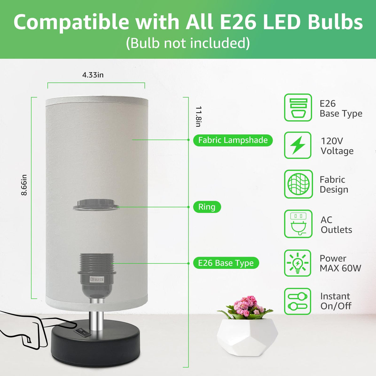 Degnju Small Lamp For Bedroom, Bedside Lamps For Night Stands, Mini Minimalist Table Lamp With Round Gray Fabric Shade, 11.4 Inc