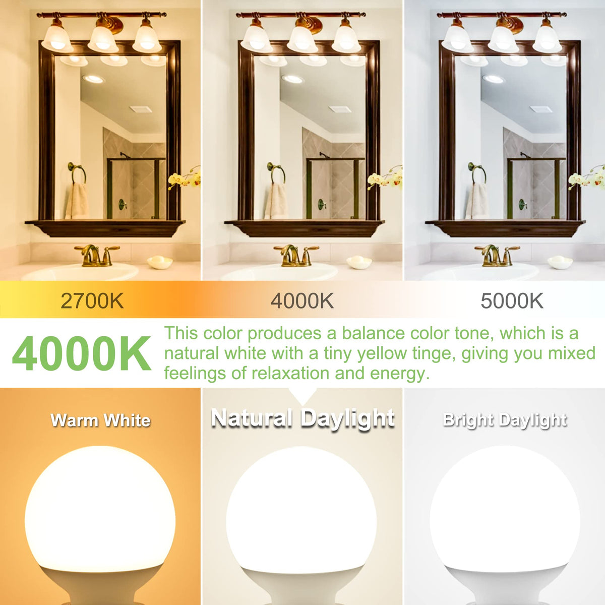 Dekang 8-Pack Led Vanity Light Bulbs For Bathroom 4000K Natural Daylight, E26 Base Globe 60W Incandescent Equivalent, 5W Round L