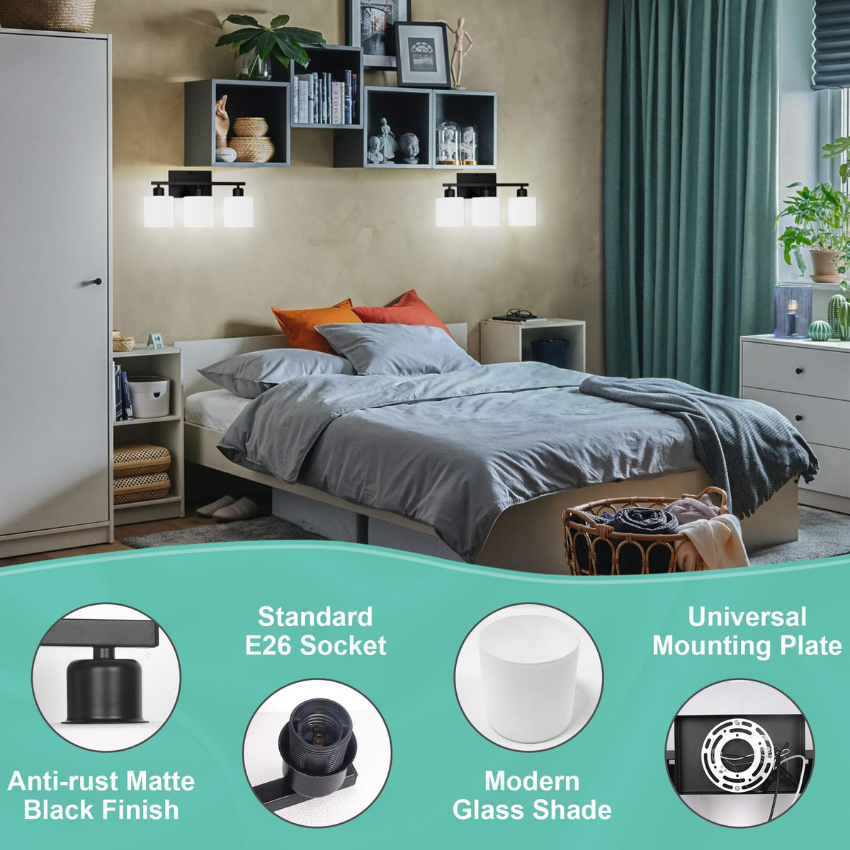 Specification:Bathroom Light Fixtures Over MirrorVoltage: 120VMax watt: 60wattMaterial: matte black metaland GlassBase: E26 Medium BaseWeight:40.5ozStyle:Modern/Classic/ MinimalistWhat? in the Box?1XBathroom Vanity Light Fixture3XWhite Glass Lampshades3XSocket Rings1XMounting Plate3XE26 Standard Socket2XScrew Nuts Screw3XWire Nuts1XUser ManualBathroom Light with Anti-rust Matte Black MetalVanity lighting fixtures with E26 Standard SocketsBathroom vanity light that work well with most dimmersEasy to installthe bathroom lights over mirrorVanity lights for bathroom, mirror.3-Light Wall Sconces Lighting for bedroom, living room.Warm Tips:1. Please cut off the power supply before installation for your safety.2. Please kindly note that there may have a ?0.5in error as the size is measured by hand.
