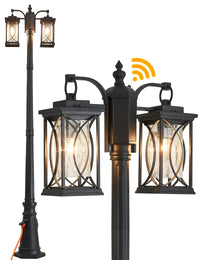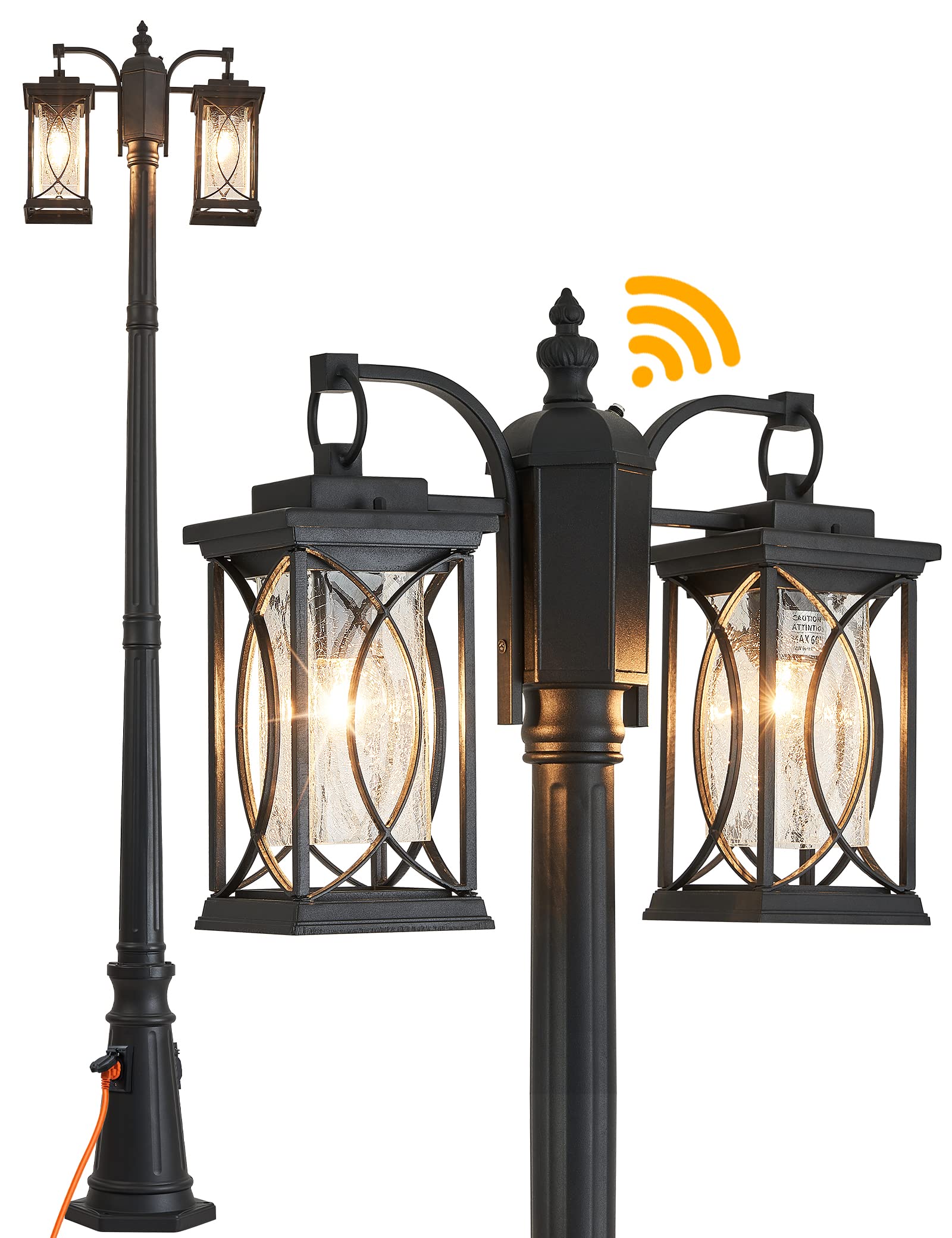 2-Head Outdoor Street Light With Dusk To Dawn Sensor Introducing Our Dusk To Dawn Outdoor Lamp Post Light, A Sophisticated And Modern 3-Head Street Pole Light Fixture Designed To Elevate Your Outdoor Lighting Experience. Carefully Crafted To Suit Various Areas Such As Your Backyard, Garden Patio, Or Driveway, This Exceptional Lamp Post Light Provides A Range Of Outstanding Features That Enhance Both Functionality And Style. Key Features: Intelligent Dusk-To-Dawn Sensor: Equipped With A Built-In Dusk-To-Dawn Light Sensor, Our Outdoor Lamp Post Light Automatically Turns On At Dusk And Off At Dawn, Ensuring Energy-Efficient And Hassle-Free Operation For Your Outdoor Spaces. Modern 2-Head Design: The Contemporary 2-Head Street Pole Light Configuration Not Only Enhances Lighting Coverage But Also Adds A Touch Of Elegance To Your Landscape, Making It Ideal For Illuminating Large Areas. Integrated Outlet: Our Outdoor Light Fixture Features A Built-In Outlet, Offering Versatile Power Options For Various Outdoor Applications Such As Holiday Decorations, Party Lights, Lawn Mowers, Barbeque Grills, And Other Equipment. This Convenient Addition Adds Practicality To Your Exterior Lighting Experience. Waterproof And Durable: Boasting A Waterproof Black Finish, This Outside Street Light Is Designed To Withstand Adverse Weather Conditions And Maintain Its Pristine Appearance. The Ip65 Waterproof Rating Ensures Lasting Illumination For Your Outdoor Areas, Even In Heavy Rain Or Damp Environments. Versatile Applications: With Its Sleek And Stylish Design, Our Electric Lantern Is The Perfect Addition To Your Backyard, Garden Patio, Driveway, Or Any Other Outdoor Area Requiring Functional And Attractive Lighting. Quality Materials: Crafted With A Die-Cast Aluminum Body, Our Outdoor Lamp Post Light Is Water And Rust-Resistant, Ensuring Durability And Longevity. The Crackled Glass Lampshade Adds A Captivating Lighting Effect, Further Enhancing The Overall Aesthetic Of Your Outdoor Spaces. Upgrade Your Outdoor Lighting With Our Dusk To Dawn Outdoor Lamp Post Light, A Modern And Versatile Solution That Combines Style, Performance, And Convenience. Experience The Transformative Impact This Waterproof Black Outside Street Light Can Have On Your Outdoor Spaces, Providing The Perfect Fusion Of Elegance And Functionality.