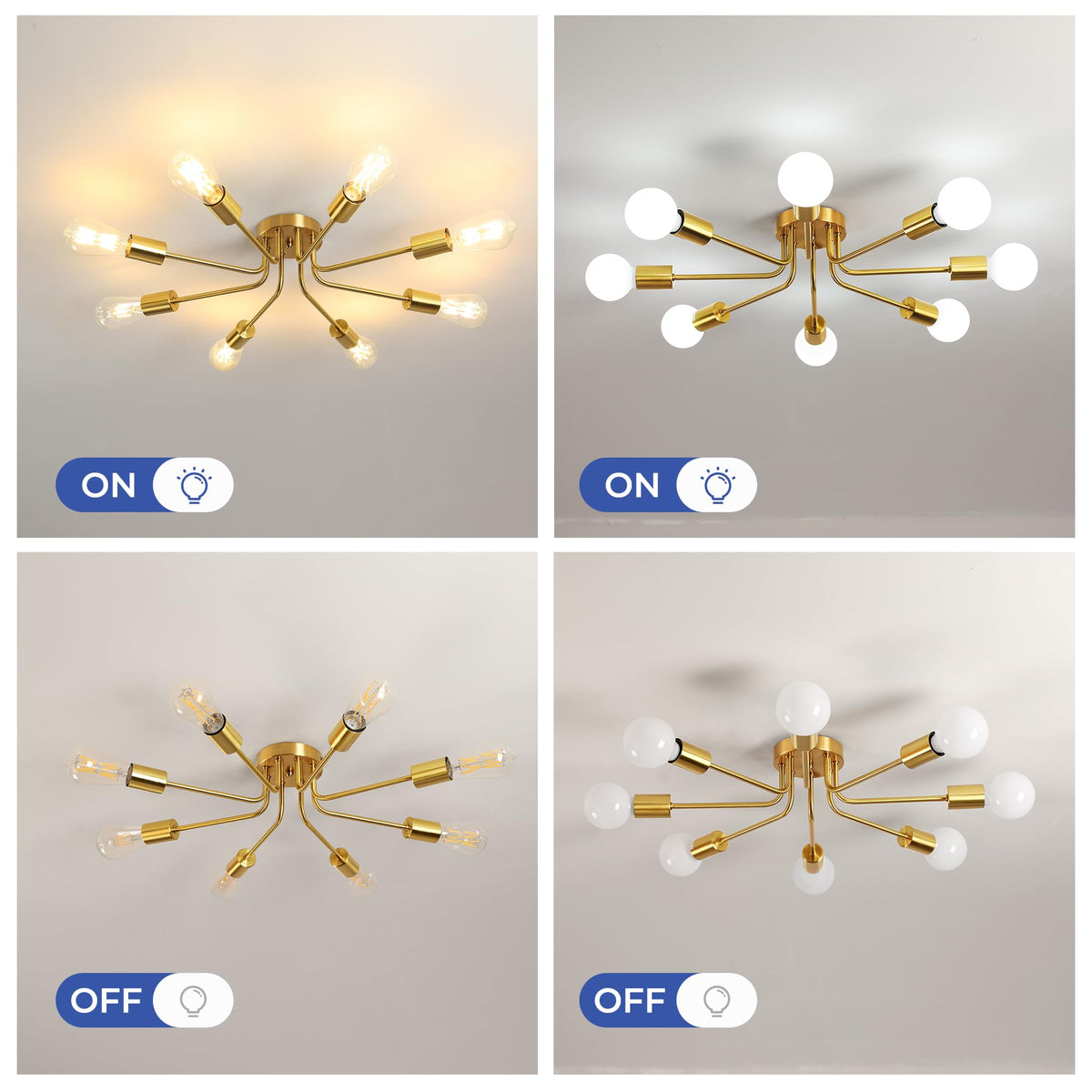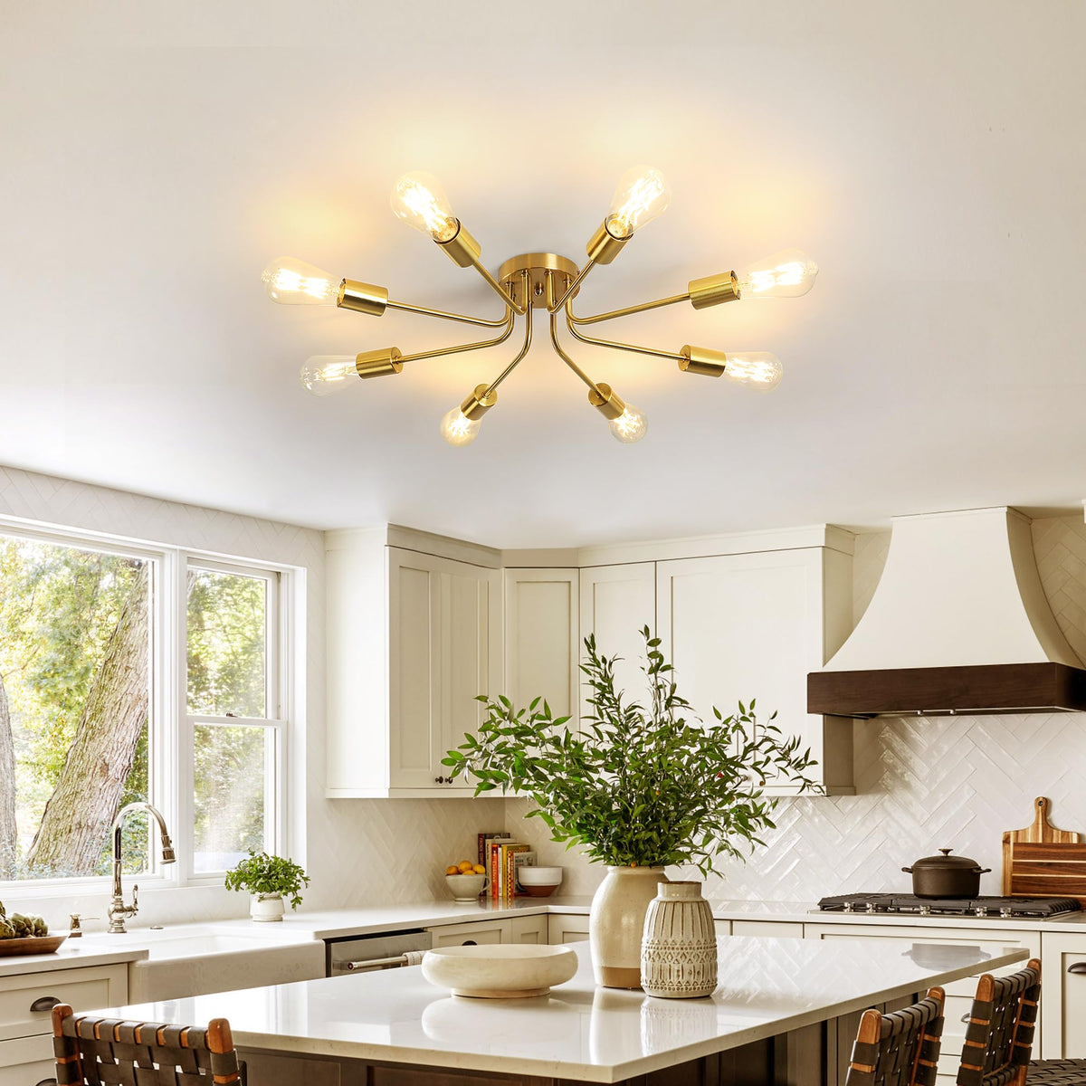 Delipop Sputnik Light Fixture, 8-Light Gold Ceiling Light Fixture, Mid Century Industrial Modern Sputnik Chandelier For Living R