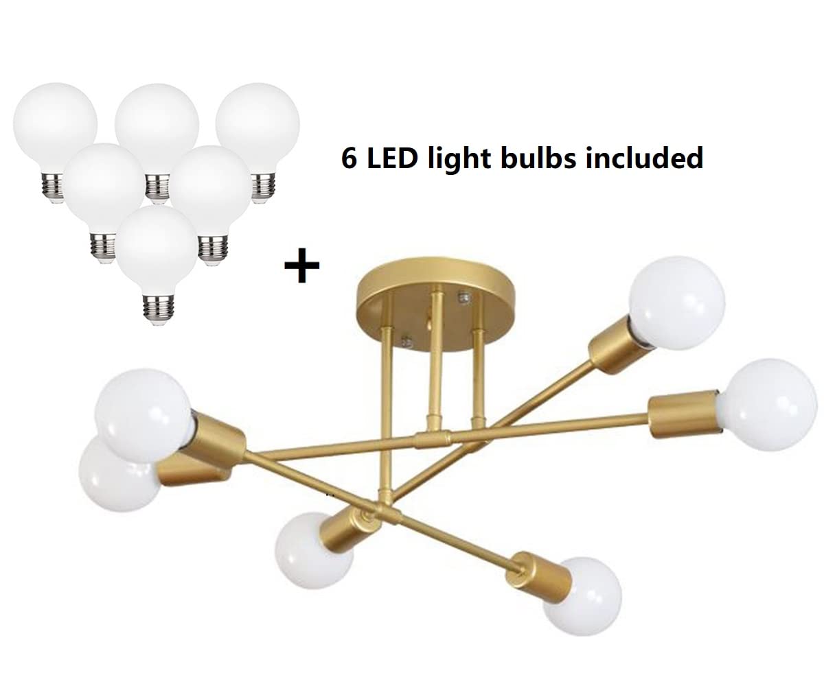 Dellemade Modern Sputnik Chandelier, 6-Light Ceiling Light, 6 Led Light Bulbs Included For Bedroom,Dining Room,Kitchen,Office (G