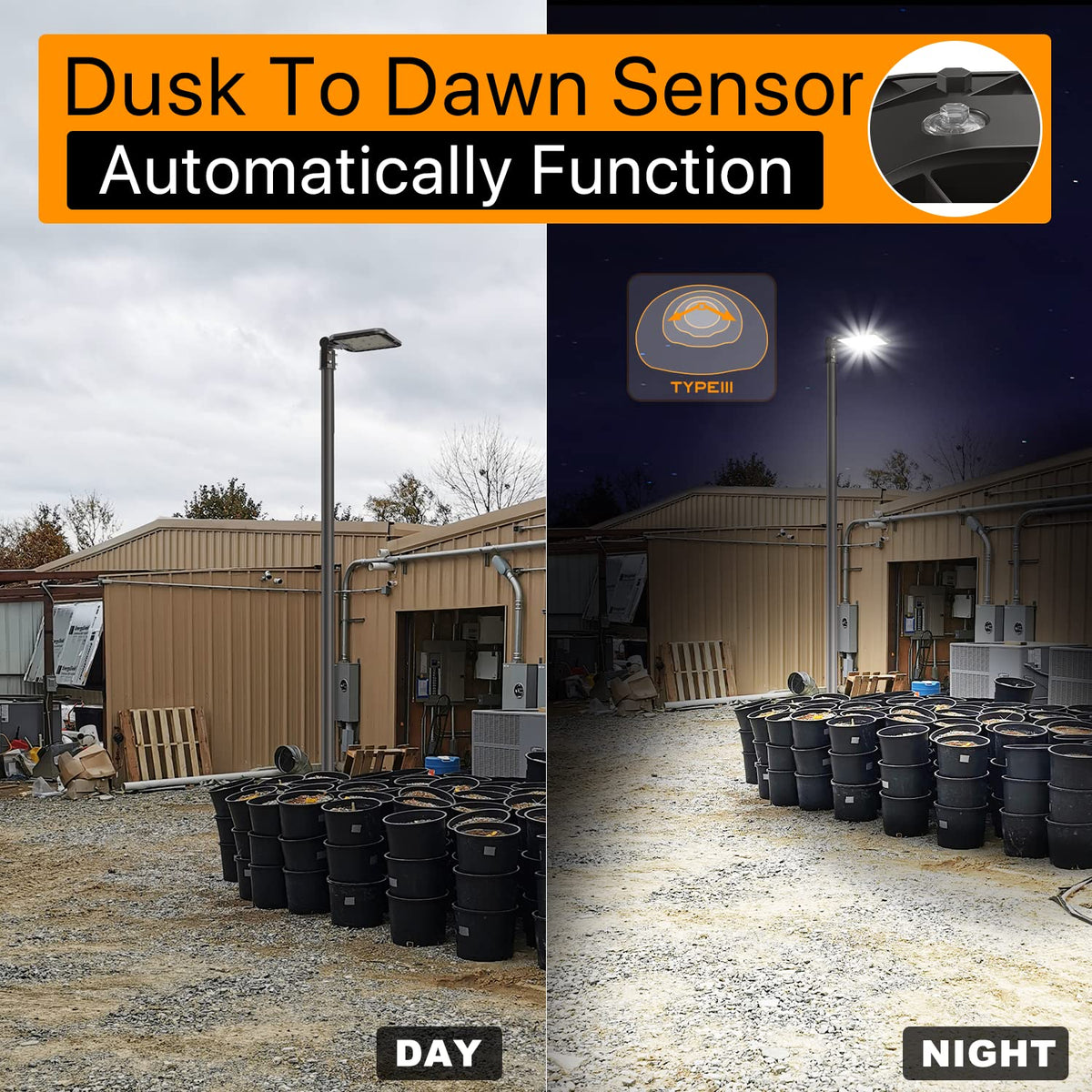 Demilare 150W Parking Lot Light Quick Installation 22500Lm Led Street Lights Slip Fitter Mount With Dusk To Dawn Photocell 100-277V 5000K Pole Light Waterproof Commercial Area Lighting For Gym, Yard