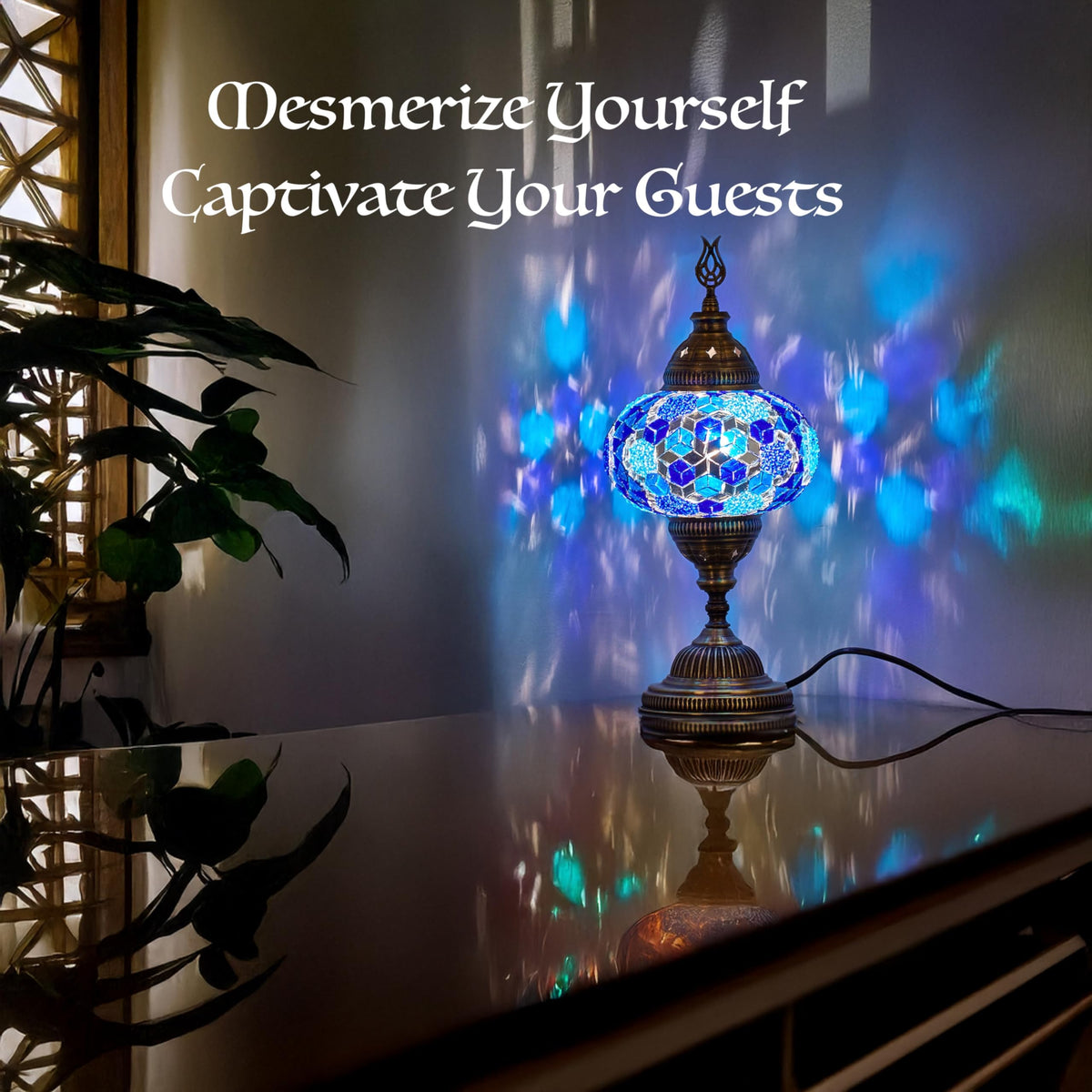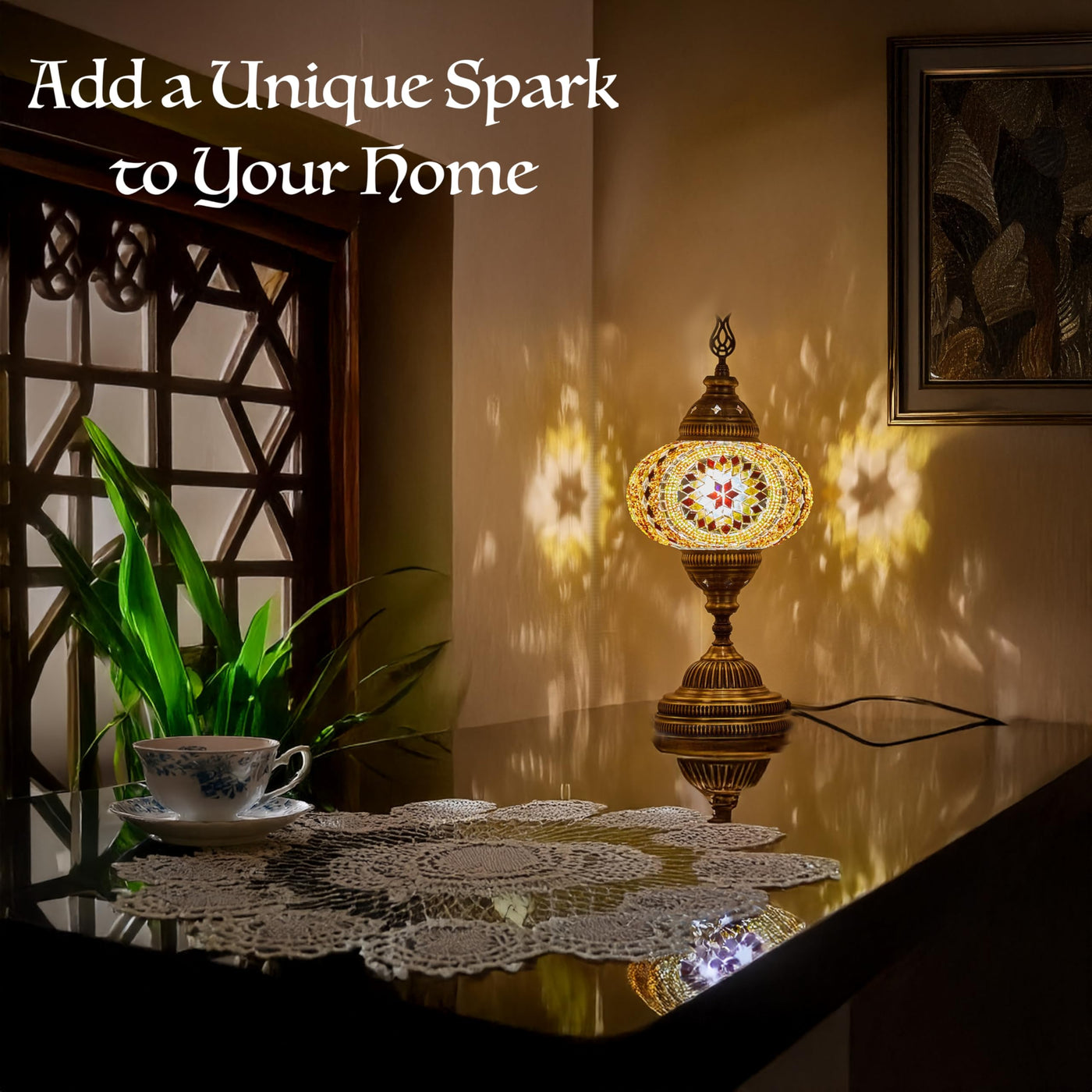 Bring the warmth and exotic beauty of the Mediterranean into your home with the DEMMEX 6.5 Big Globe Turkish Moroccan Mosaic Table Lamp. This handcrafted lamp, made in Turkey, features a radiant mosaic globe that comes alive when illuminated, filling your space with a mesmerizing array of colors. The Tiffany-style glass mosaics showcase a blend of traditional craftsmanship and timeless design, creating a one-of-a-kind piece that effortlessly elevates any room. The 7-inch globe sits on a polished brass base and stands 14 inches in height, making it the perfect addition to any bedside table, desk, or accent table. Uses with the lamp is an energy-efficient LED bulb, which highlights the intricate details and vibrant colors of the glass mosaics. Whether youre looking to add a touch of Oriental flair to your decor or want a statement piece that captures the essence of Mediterranean style, this Turkish Moroccan Mosaic Table Lamp offers both function and beauty.