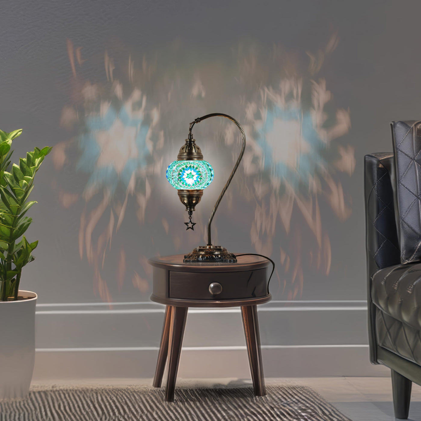 DEMMEX Handmade Turkish Moroccan Colorful Mosaic Antique Table Desk Bedside Night Lamp Lampshade, Turquoise, Teal, Green