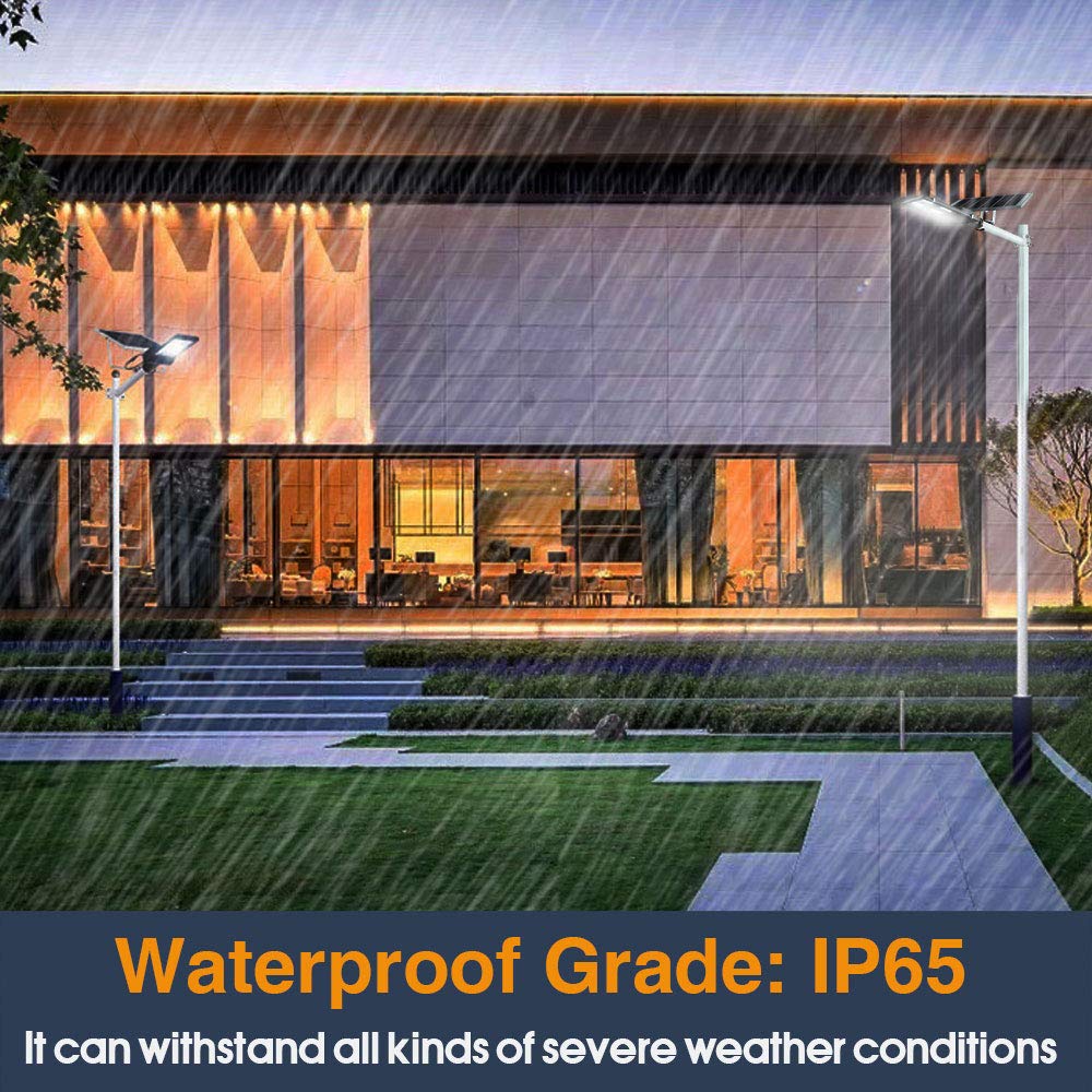 6000W Solar Street Light with Remote Control & Pole Features: 1.468 LED high brightness, 36,000mAh large capacity lithium battery, LED solar street Light for Basketball Court, Walkway, Pathway, Campus, Farm, Perimeter Security etc. 2.Light up automatically in the dark and turn off in the day time or bright light condition. 3.9 Level brightness, you can adjust the brightness according to your needs. 4.2 ways to install, it can be mounted on the pole with a diameter of 2 to 4 inch or on wall. 5.Easy to install, waterproof, no pollution and durable, high-temperature resistance and long lifespan Specifications: Power of Solar Street Light: 6000W Solar Panel: 6V/35W Battery: 6.4V/46,000mAh LED: 468pcs/ Max 9800 LM Color Temperature: 6500K/Cool White Charging Time: 8 Hours (if get enough sunlight) Waterproof Grade: IP65 Material: Aluminium Alloys/Glass Working Temperature: -25?-60? Solar Street Light Size: 15.7 x 8.3 inch Solar Panel Size: 20.8 x 13.7 inch Pole Length: 1.96ft/60cm Diameter of Pole Mounting Bracket: 2-4 inch Package Included: 1 x Solar Street Light 1 x Solar Panel 1 x Pole 1 x Mounting Bracket 1 x Assembly Accessories Set 1 x Remote Control (battery included) Note: - Solar panel should be placed where can receive maximum sunlight directly. - The solar light should not be installed near strong sources of light.