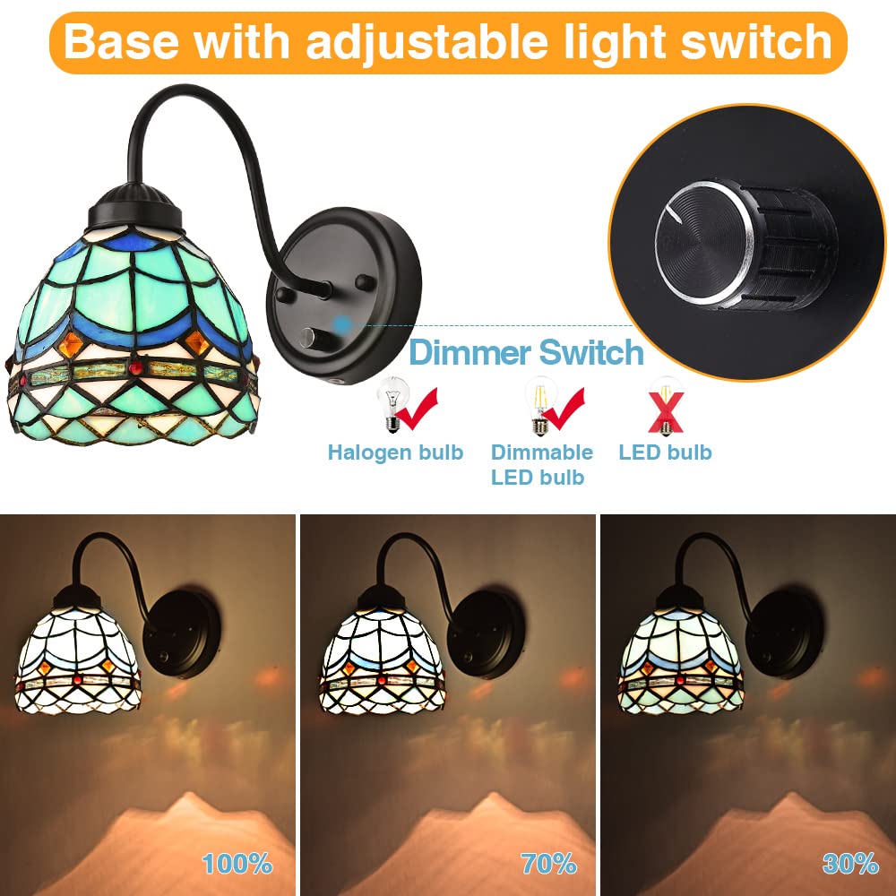 Q: What types of bulbs are compatible with the DENGMALL Tiffany Bedside Wall Mount Lamp?A: The DENGMALL Tiffany Bedside Wall Mount Lamp is compatible with dimmable LED bulbs and halogen bulbs. Make sure to use a compatible dimmer switch for optimal brightness adjustment.