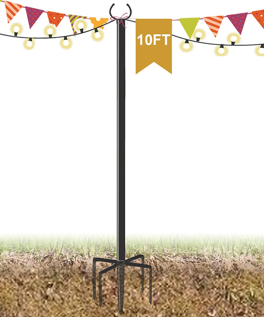Derkniel 10 Ft Outdoor String Light Pole Stand For Garden Lawn, Adjustable Globe Patio Light Post For Hanging Outside Decorate Lighting, 1 Pack