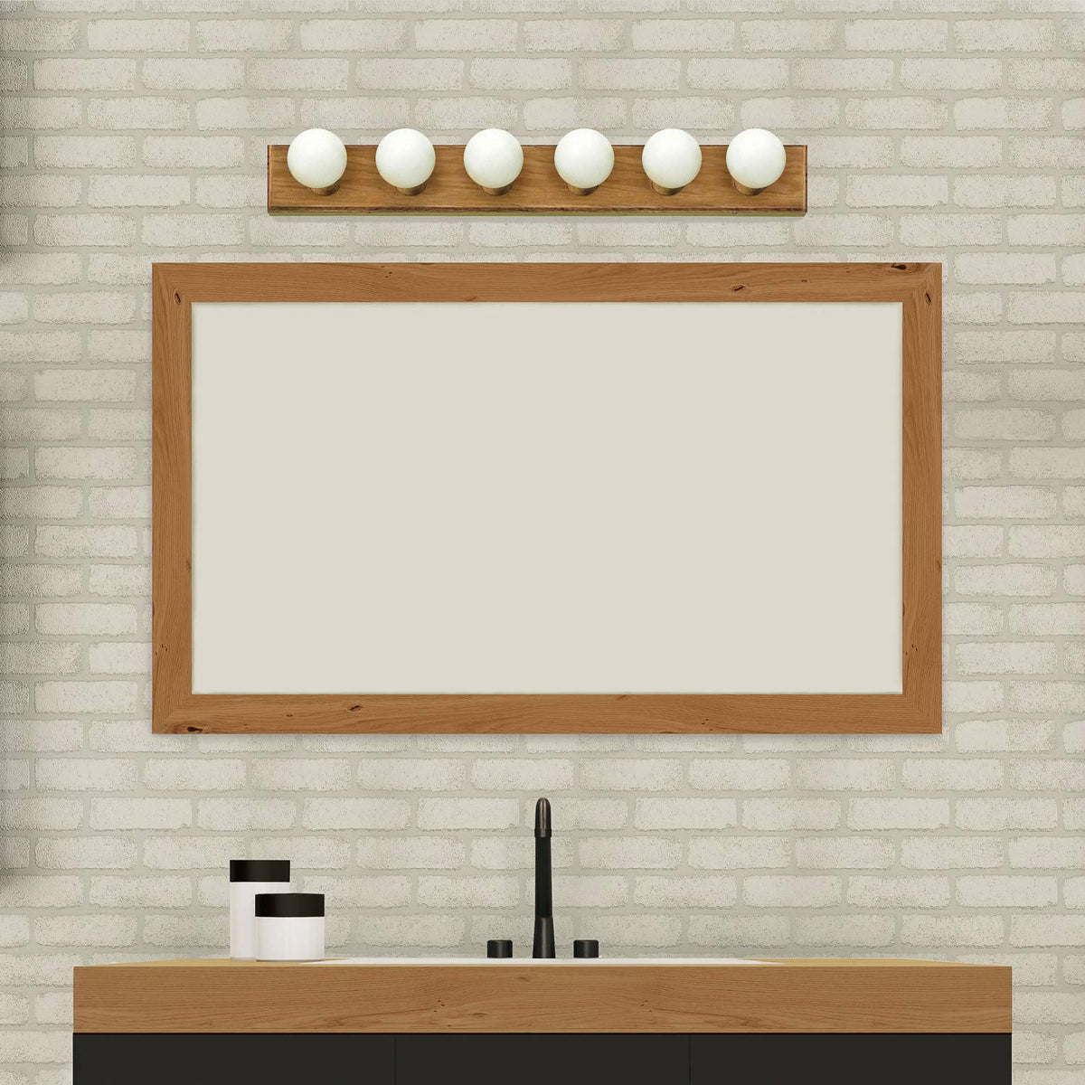 Product DescriptionThe Design House 500223 6 Light Vanity Light illuminates your bathroom with its timeless configuration and bright aesthetics. This fixture has a honey oak finish and uses (6) 60-watt medium base incandescent bulbs. This fixture can easily be paired with traditional furnishings and mimics the classic Hollywood design with a country spin. This wall mount's petite design mounts seamlessly to the wall without a chain or visible wires. Measuring 4.5-inches (H) by 36-inches (W), this 3.25-pound vanity can be mounted facing up or down depending on location and preference. This vanity is UL listed, cUL listed and approved for damp areas and is rated for 120-volts. Coordinate your home with the rest of The Village fixtures and furnishings. The Design House 500223 The Village 6-Light Vanity comes with a 10-year limited warranty that protects against defects in materials and workmanship. Design House offers products in multiple home decor categories including lighting, ceiling fans, hardware and plumbing products. With years of hands-on experience, Design House understands every aspect of the home decor industry, and devotes itself to providing quality products across the home decor spectrum. Providing value to their customers, Design House uses industry leading merchandising solutions and innovative programs. Design House is committed to providing high quality products for your home improvement projects.From the ManufacturerThe Village Collection's easy lines fit any space and budget. The honey oak finish is timeless. The vanity light bar will look great with oak cabinets.