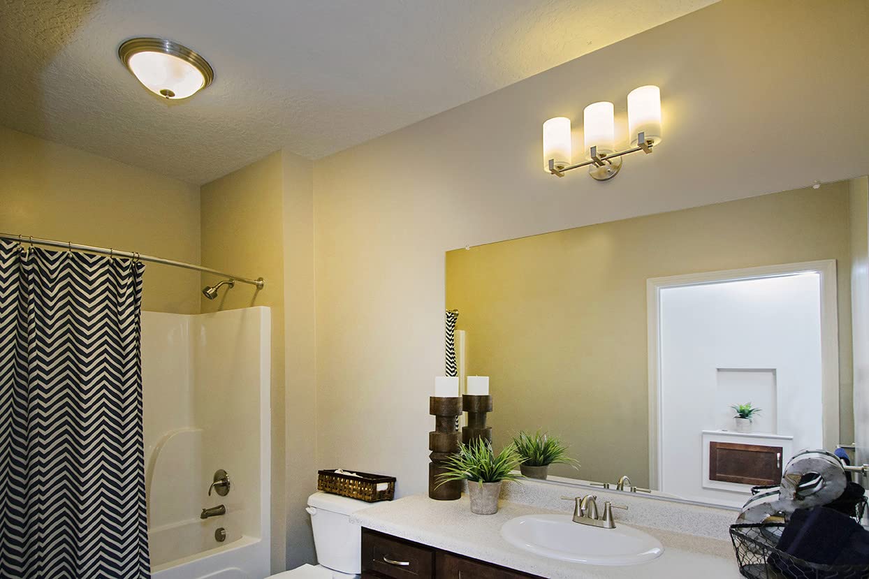 Product DescriptionThe Design House 511550 Millbridge 2-Light Ceiling Light is made of formed steel, alabaster glass and finished in satin nickel. This 2-light ceiling mount is rated for 120-volts and uses (2) 60-watt medium base incandescent bulbs. As one of the most popular styles of light fixtures, ceiling mounts are suited for any room in the house as they hang close to the ceiling with a classic half-moon shape. Measuring 7-inches (H) by 13.25-inches (W), this 3.6-pound fixture's clean lines and sleek details add a modern accent in a kitchen, dining room or entry way. This product is UL and cUL listed. The Millbridge collection features a beautiful matching pendant, chandelier, ceiling mount and vanity light. The Design House 511550 Millbridge 2-Light Ceiling Light comes with a 10-year limited warranty that protects against defects in materials and workmanship. Design House offers products in multiple home decor categories including lighting, ceiling fans, hardware and plumbing products. With years of hands-on experience, Design House understands every aspect of the home decor industry, and devotes itself to providing quality products across the home decor spectrum. Providing value to their customers, Design House uses industry leading merchandising solutions and innovative programs. Design House is committed to providing high quality products for your home improvement projects.From the ManufacturerThe Millbridge Collection is simple and affordable. The satin nickel finish is popular with today's trends. Available in a variety of styles to meet your needs.