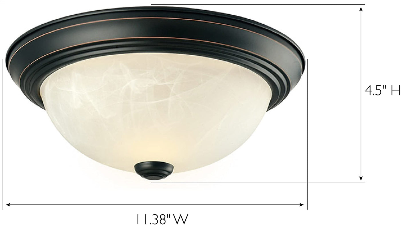 Simplistic and stylish, this Design House 587519 2-light flush mount ceiling light will boost the brightness in any room inside your home. This fixture features a rich oil-rubbed bronze that will complement farmhouse and traditional decor arrangements. A dome-shaped alabaster glass shade tops the look, diffusing a warm glow of light to your space below.