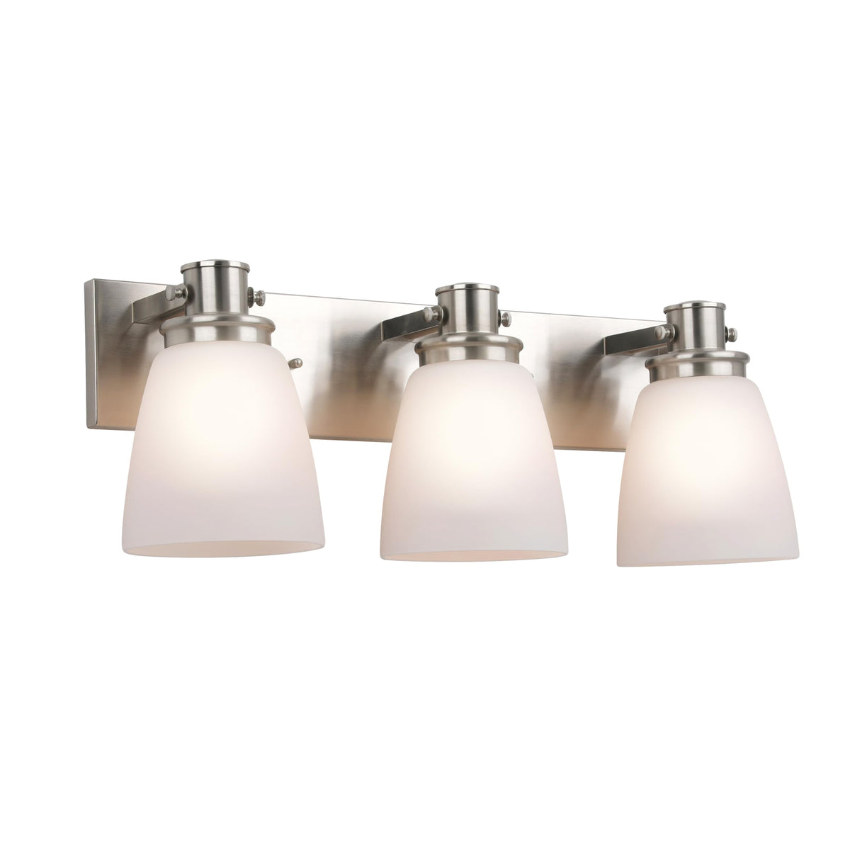 Design House Atkinson Vanity Light, 3-Light, Frosted White Glass Shades, Dimmable, Up/Down Mountable, E26 Socket, Satin Nickel,