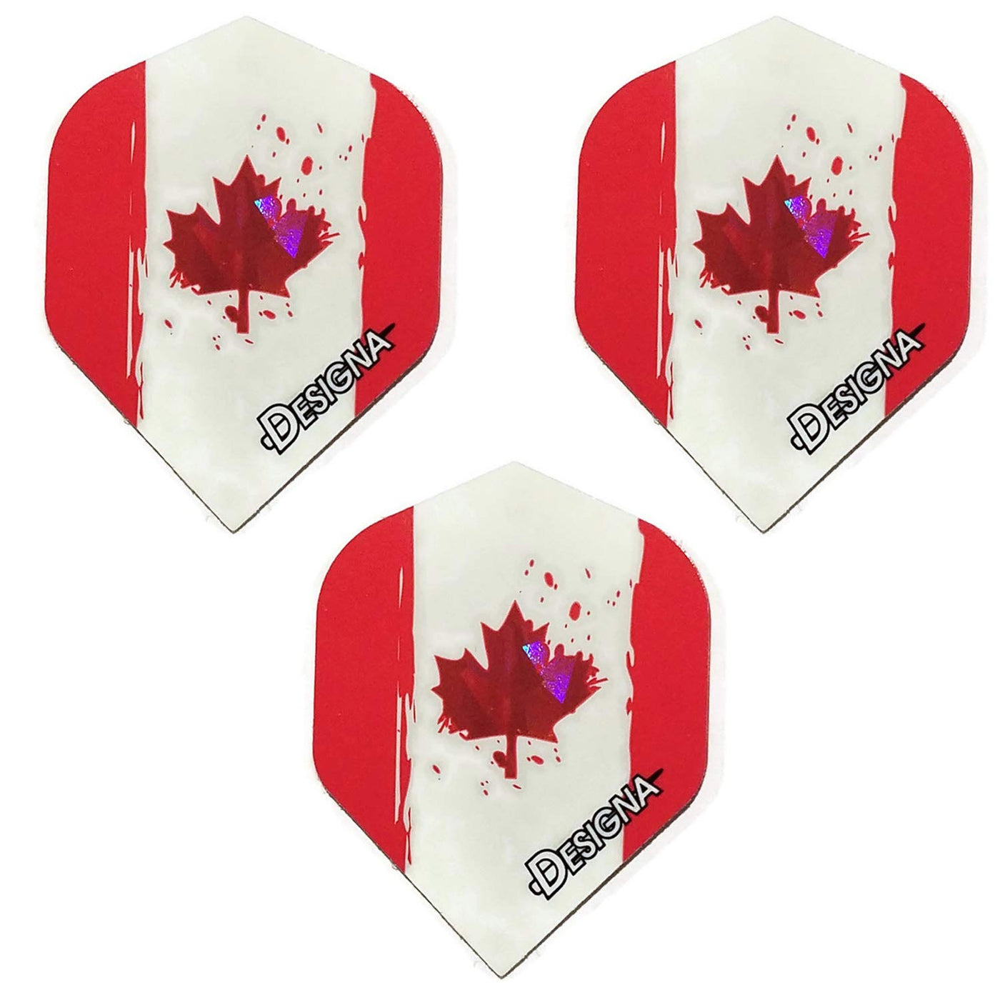 Comes with 9 standard 75 Micron Strong flights. Canada is the second largest country in the world by total area The name Canada comes from the word kanata which means settlement or village in the language of the indigenous St Lawrence Iroquoians. The maple leaf is a Canadian symbol and features prominently on the national flag. Canada only got its own flag 100 years after it became a country - on February 15, 1965.