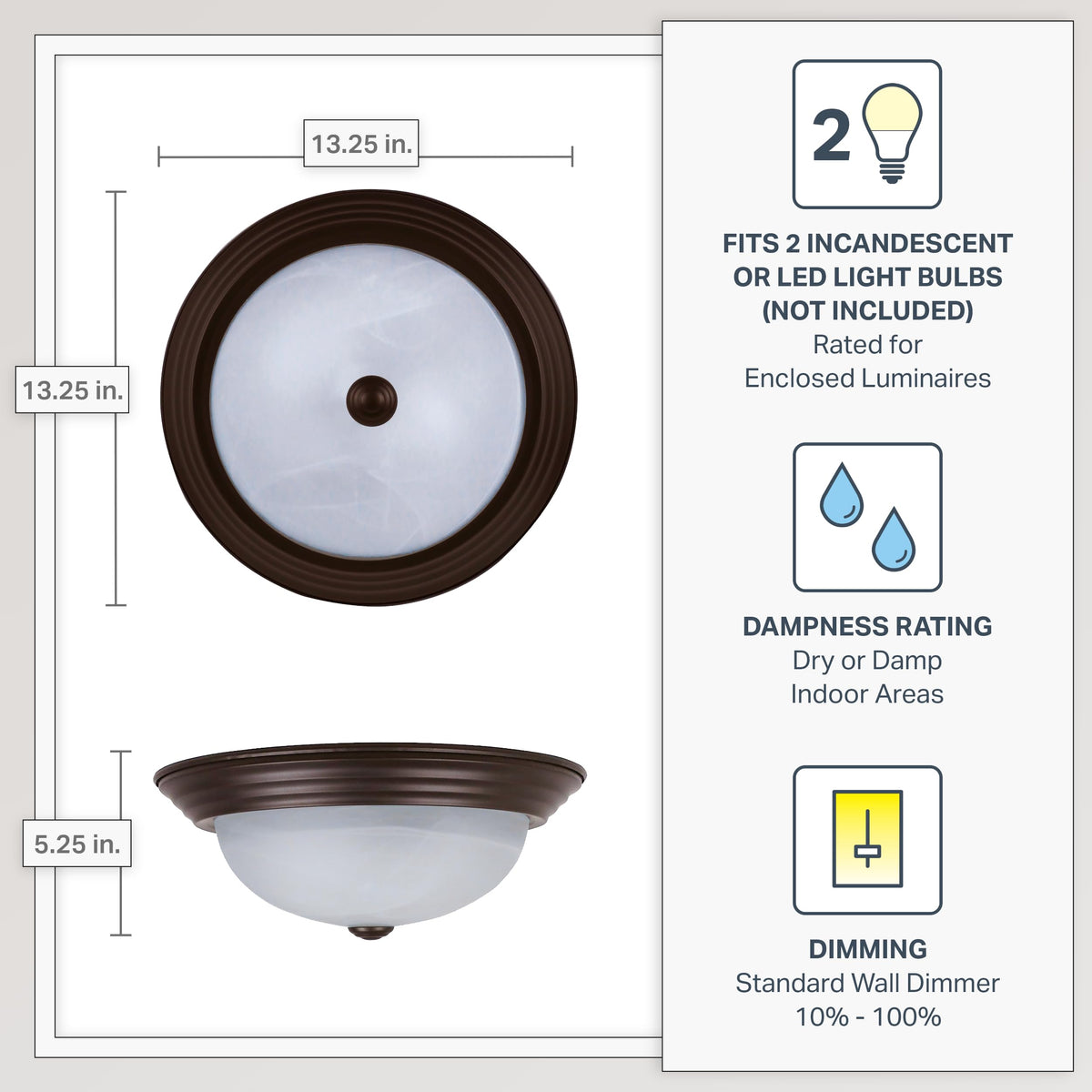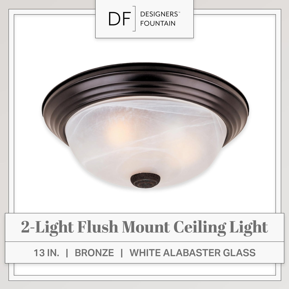 Designers Fountain 13 Inch, Modern 2-Light Flush Mount Ceiling Light Fixture, Alabaster Glass Shade, For Bedroom, Hallway, Indoor Room Lighting, Durable Steel, Easy Install, Bronze, 1257M-Orb-Al