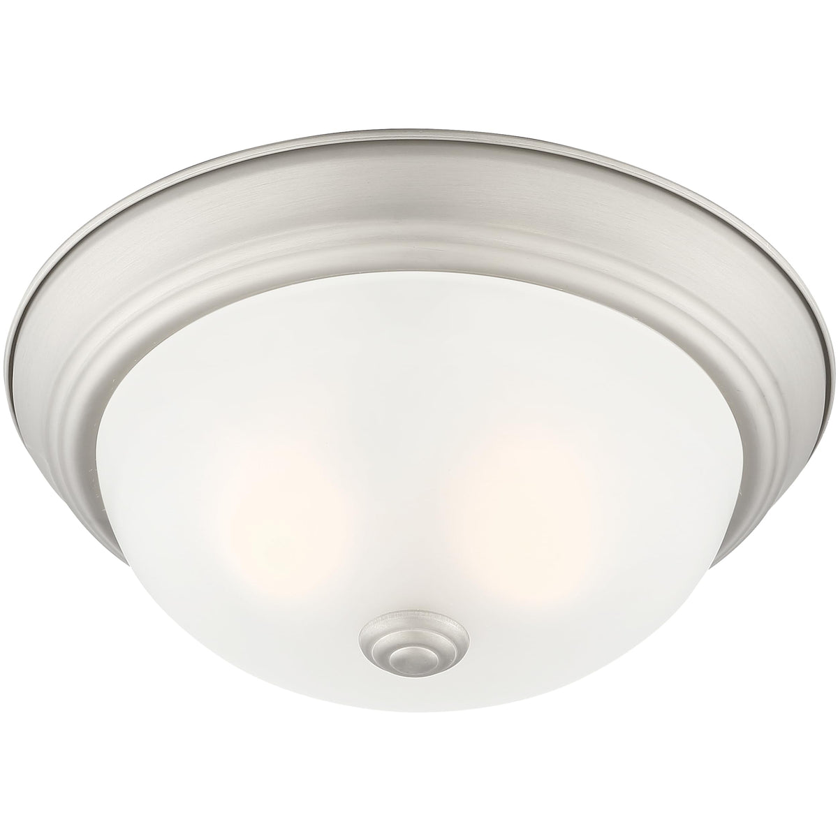 Q: What are the dimensions of the ceiling light fixture?A: The DESIGNERS FOUNTAIN 2-Light Flush Mount Ceiling Light measures 11.25 inches in width, 11.25 inches in depth, and 4.75 inches in height, making it a compact option for various spaces.