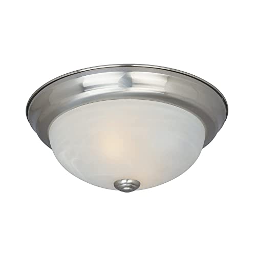 Designers Fountain 2-Light Flush Mount Ceiling Light, 11 Inch Lighting Fixture For Kitchen, Bedroom, Bathroom, And Hallway, White Alabaster Glass, Satin Platinum, 1257S-Sp-Al