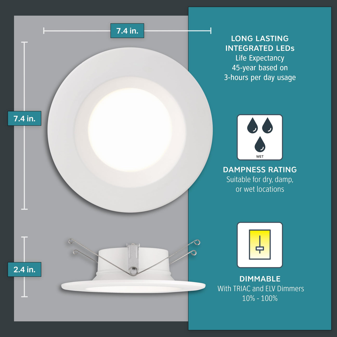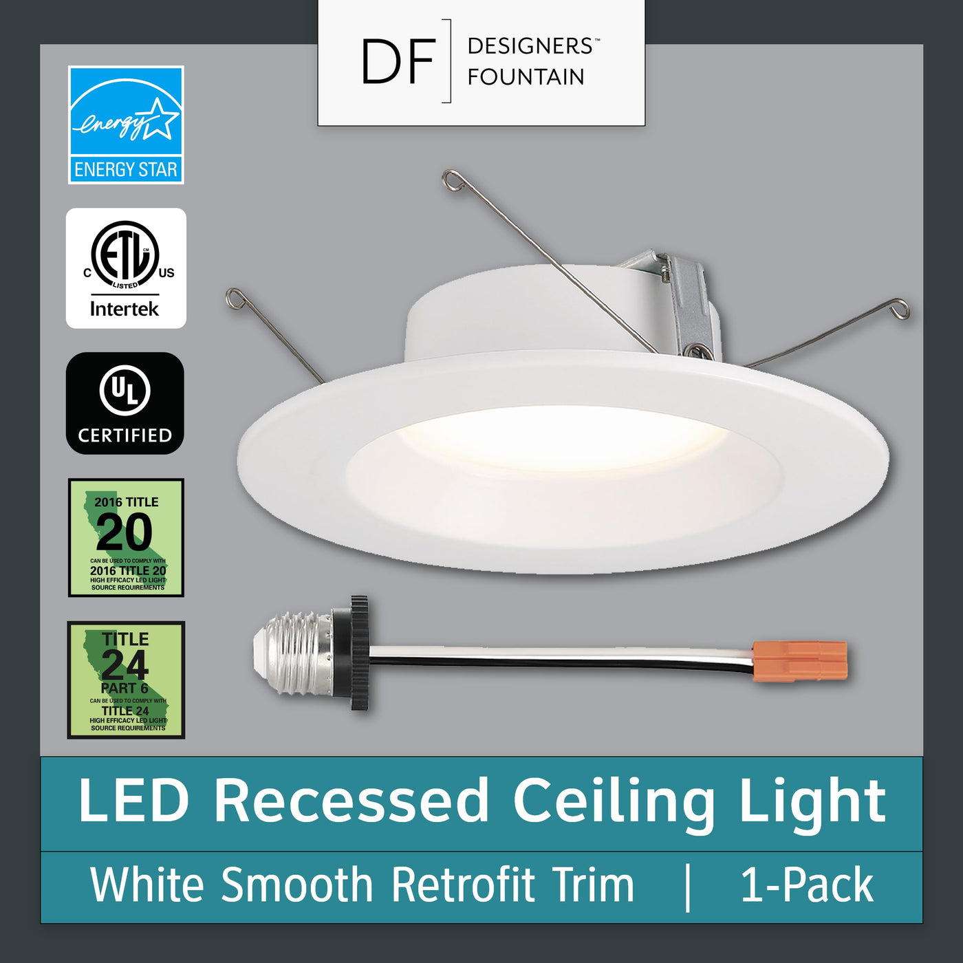 Provide Energy-Efficient Lighting For Residential And Commercial Settings With Our Designers Fountain Recessed Ceiling Lights. Featuring A Durable Metal Construction, Our Trim Lights Have Long-Lasting Integrated Leds And Feature 5 Selectable Color Temperatures (2700K, 3000K, 3500K, 4000K, 5000K) To Provide The Perfect Ambiance For Your House Entryway, Living Room, Kitchen, Bedroom, Bathroom, Pantry, And Much More. Our Led Downlights Produce 1000 Lumens Using Only 12 Watts, Providing Energy-Efficient Interior Lighting While Saving On Cost. Our Interior Recessed Lights Offer Flexibility For Various Ceiling Spaces, Allow For Easy Installation, And Suitable For Dry And Damp Locations. These Ceiling Lights Are Great For Construction, Remodel, And Retrofit Applications. The Retrofit Recessed Lights Are Compatible With Most Dimmers For Smooth Dimming, Feature A High Cri Of 90 For Accurate Color Rendering, And Use 120V. Our Recessed Ceiling Lights Measure 7.4 W X 7.4 D X 2.4 H In Inches, And The Recessed Lights Are Etl, Energy Star, Ul Certified, Title 20, And Ca Title 24 Compliant. Our Recessed Lights Come With A 5 Year Warranty To Ensure Durability And Long-Lasting Performance.