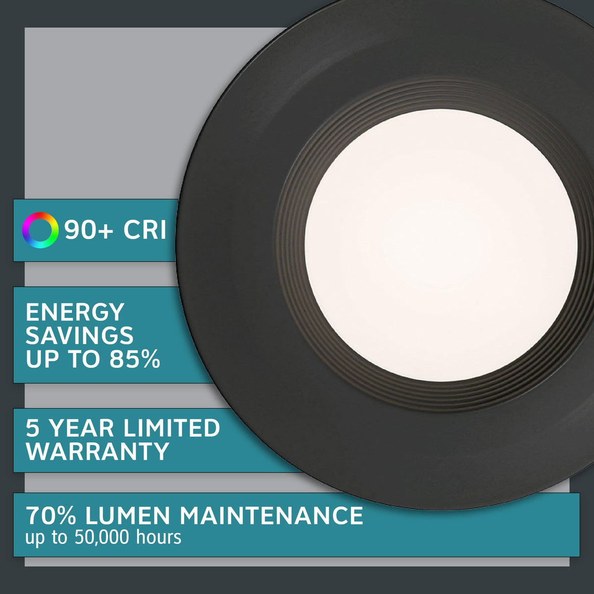Q: What is the lifespan and energy efficiency of these LED recessed lights?A: These LED recessed lights have a lifespan of 50,000 hours and produce 1050 lumens using only 12.5 watts, making them highly energy-efficient for both residential and commercial use.