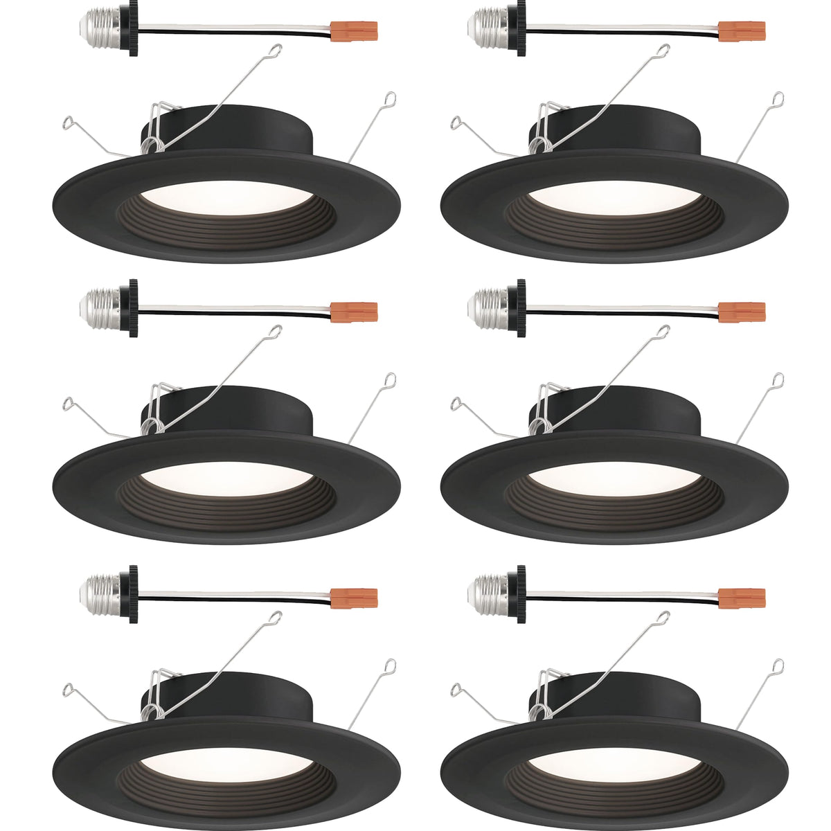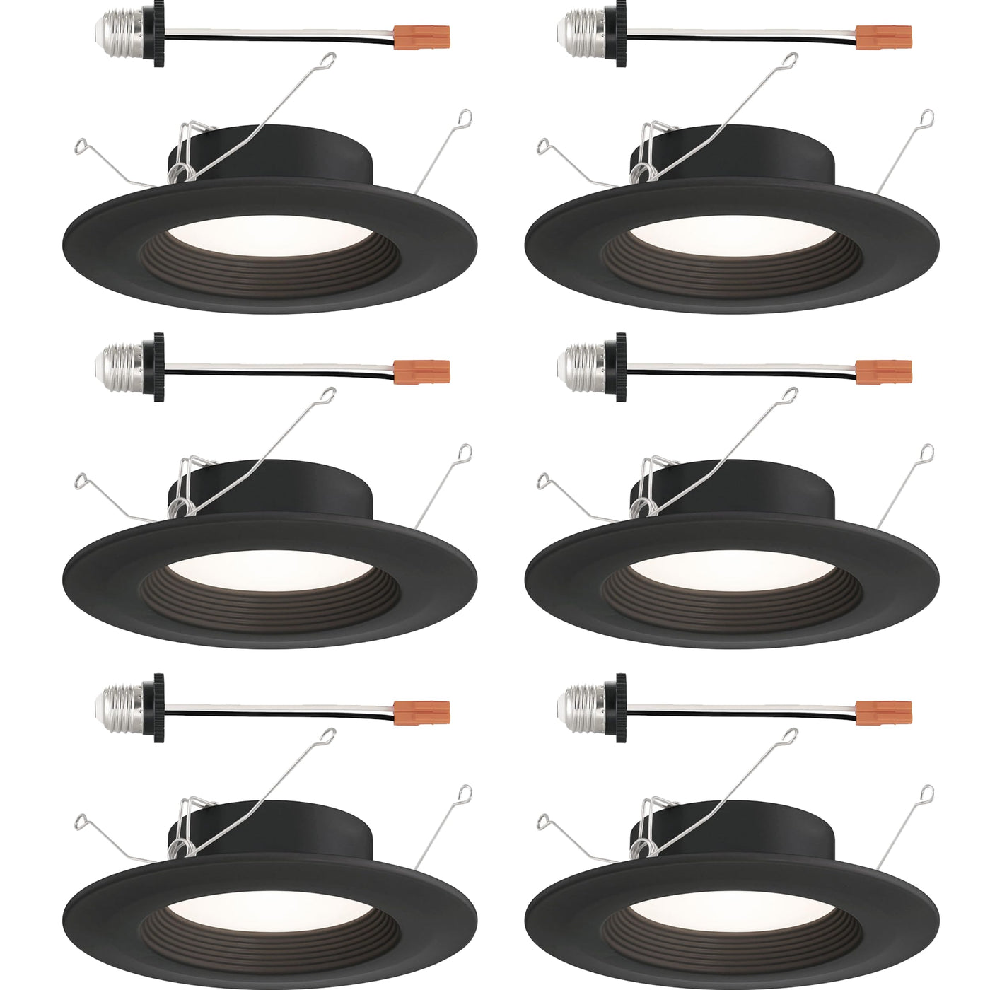 Designers Fountain Led Recessed Ceiling Lights, 6 Pack, 5''/6'' Retrofit Trim With E26 Socket Adaptor 5Cct Downlight Metal Light