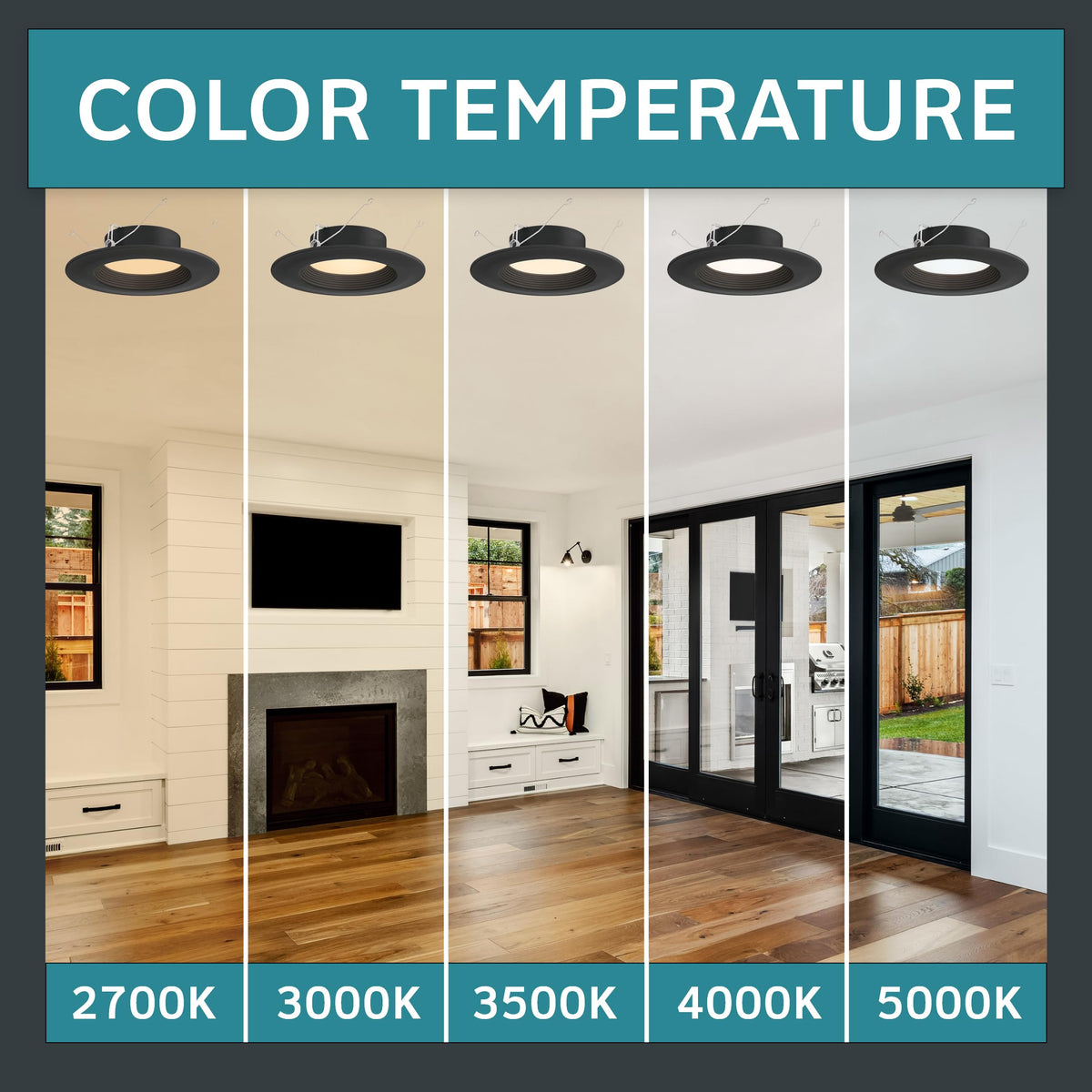 Q: What are the color temperature options for the DESIGNERS FOUNTAIN recessed ceiling lights?A: The DESIGNERS FOUNTAIN recessed ceiling lights feature 5 selectable color temperatures: 2700K, 3000K, 3500K, 4000K, and 5000K, allowing you to create the perfect ambiance for any room.