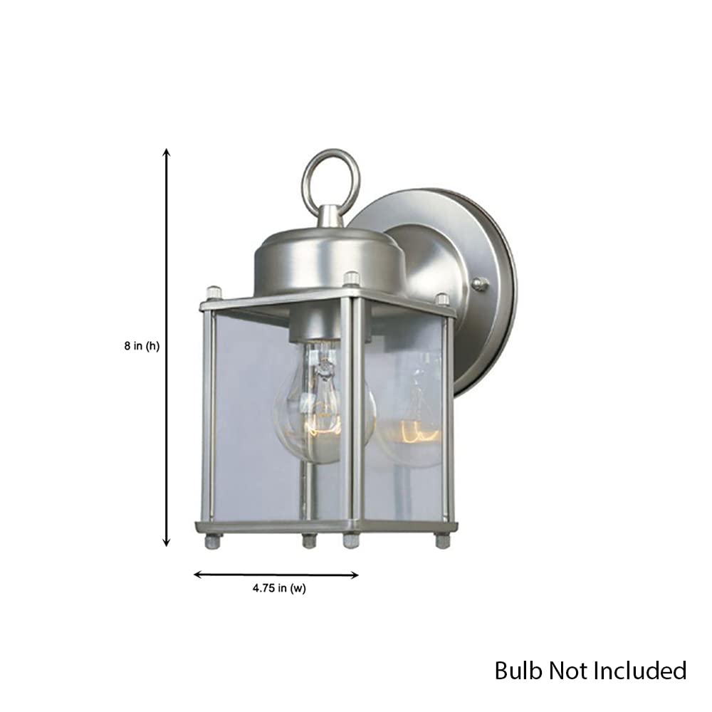- **Specifications**: The fixture extends 5.75 inches from the wall and measures 4.75 inches in width by 8 inches in height. It accommodates one medium-base incandescent bulb (60W max) or a 12W LED bulb (bulbs not included). Certified for installation in wet exterior areas, the Preston Wall Mounted Sconce Lantern is a reliable choice for your outdoor lighting needs.